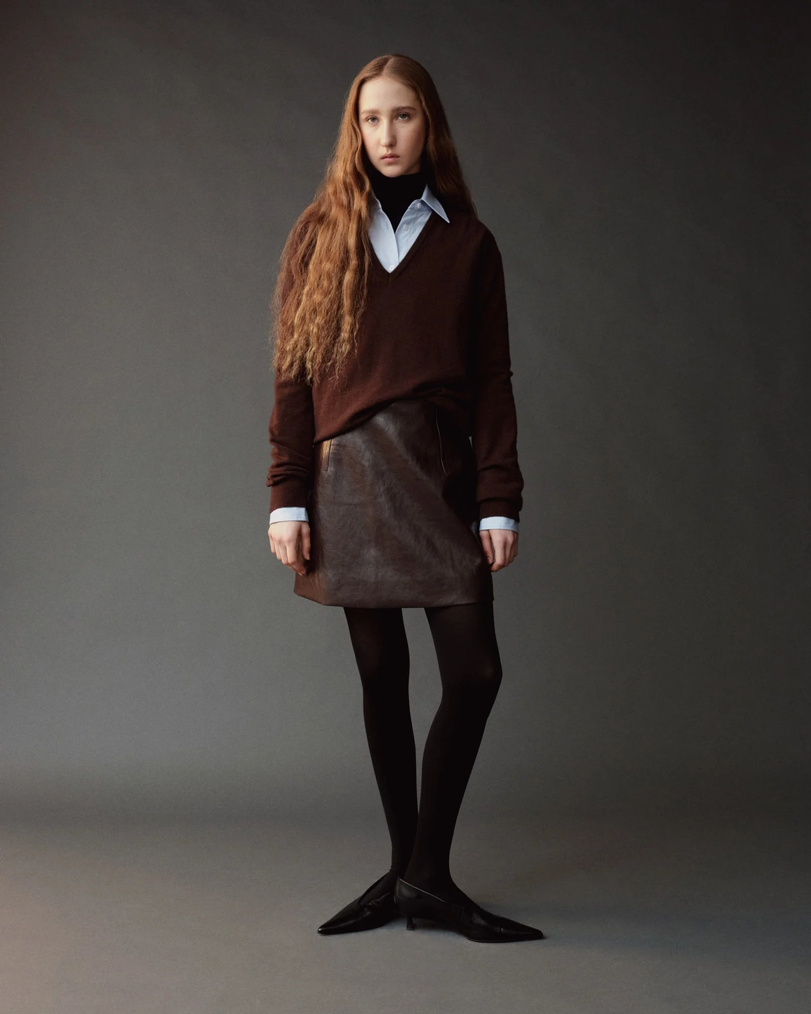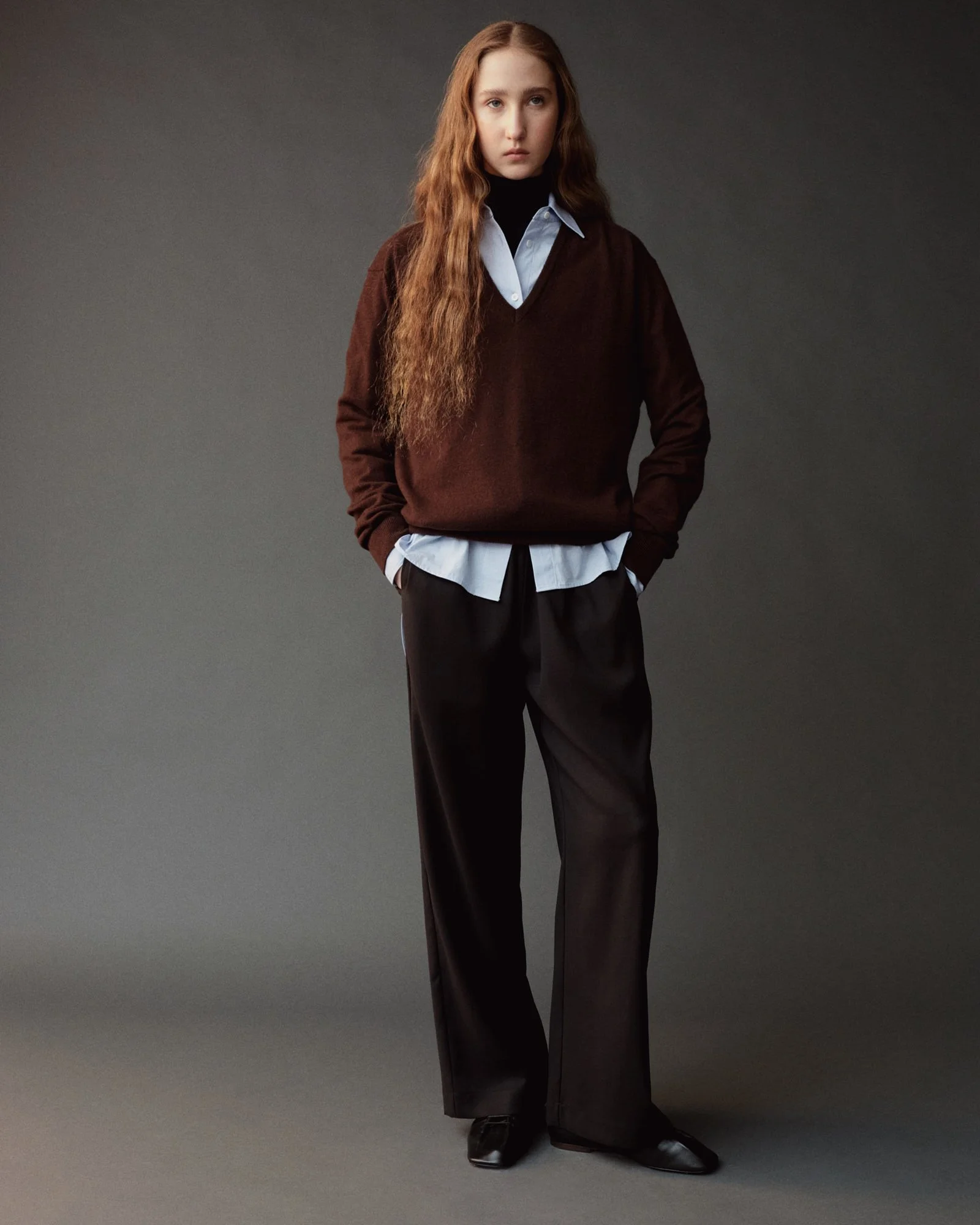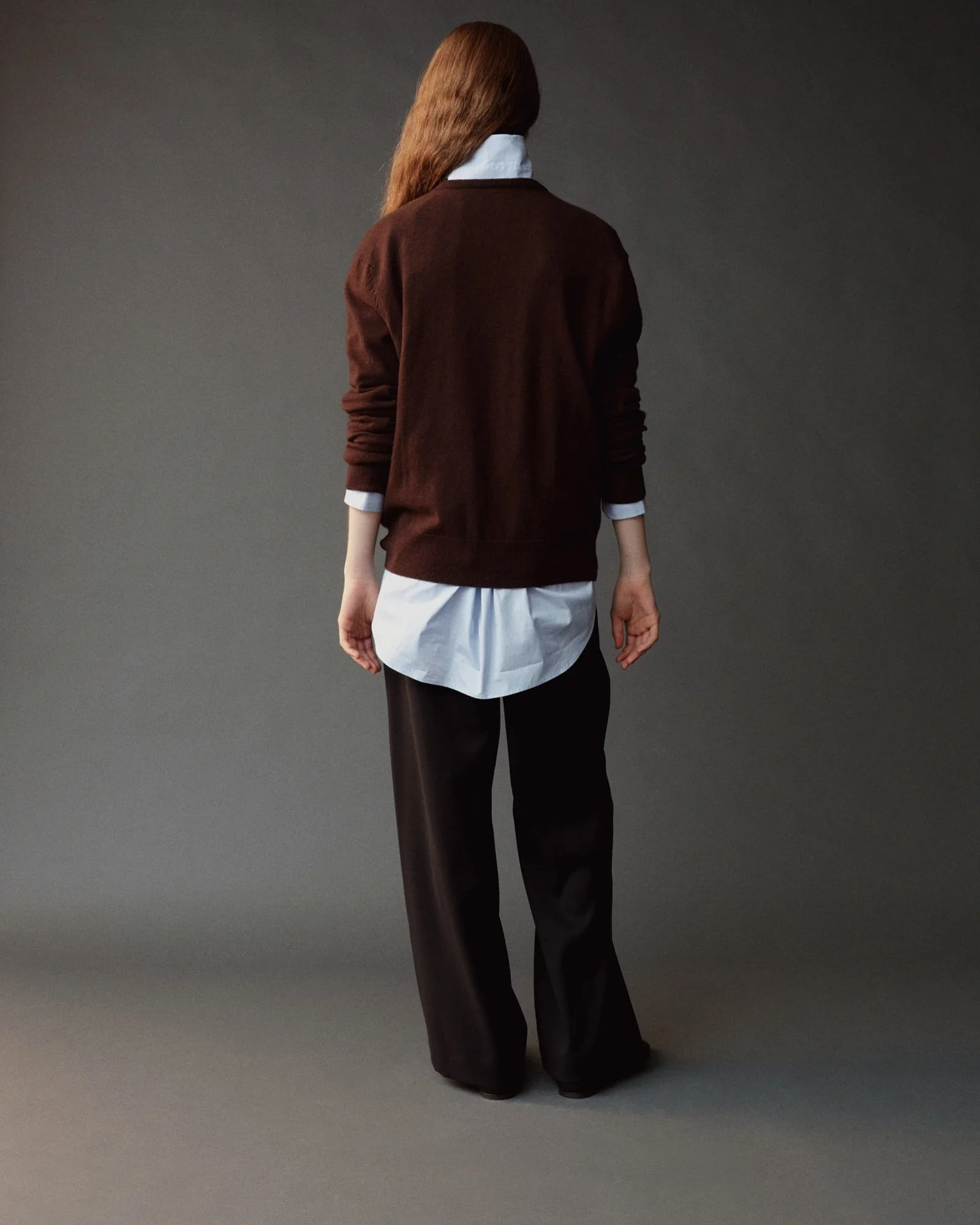 CASHMERE BLEND V-NECK KNIT - BROWN