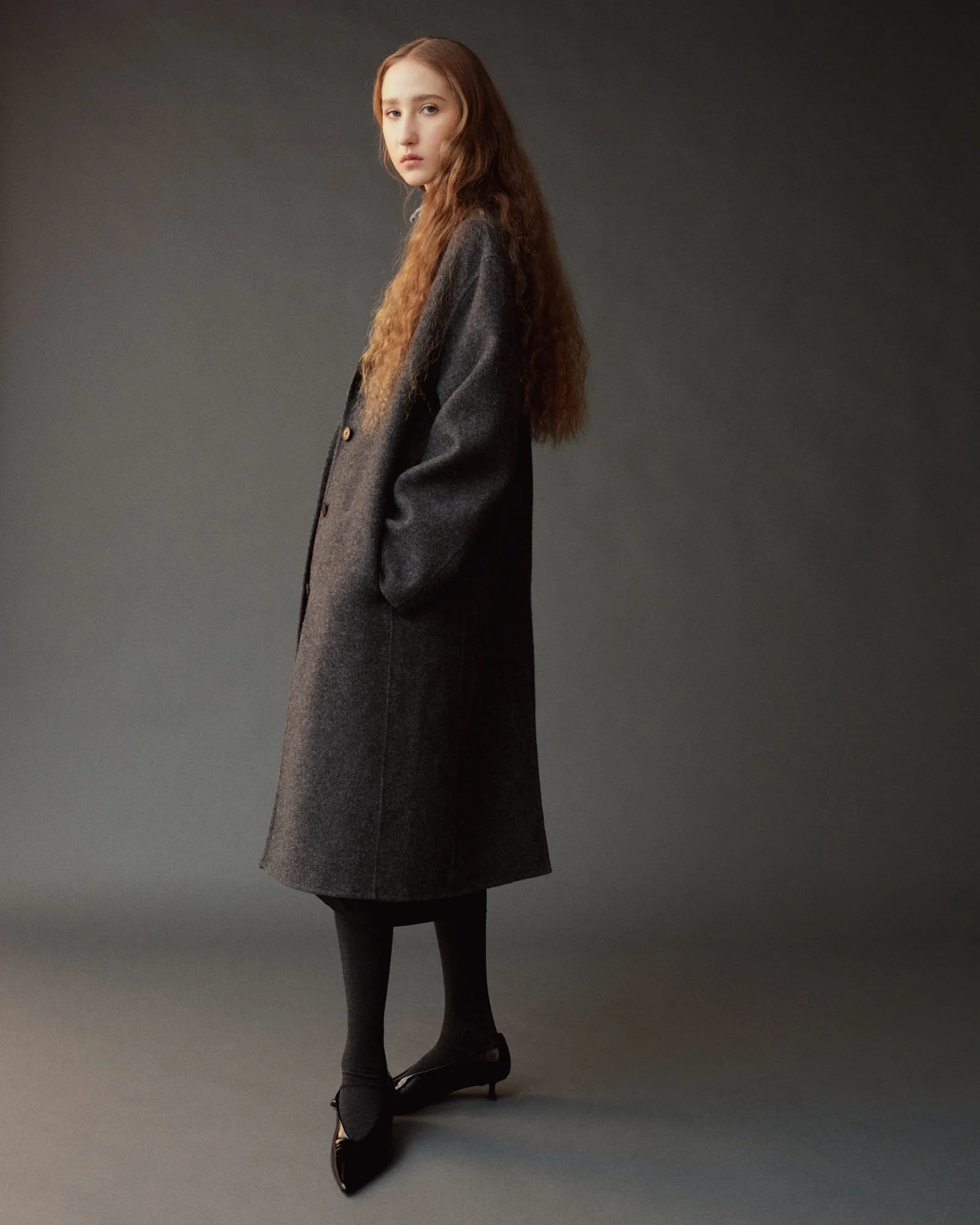 SINGLE-BREASTED HANDMADE WOOL COAT - CHARCOAL