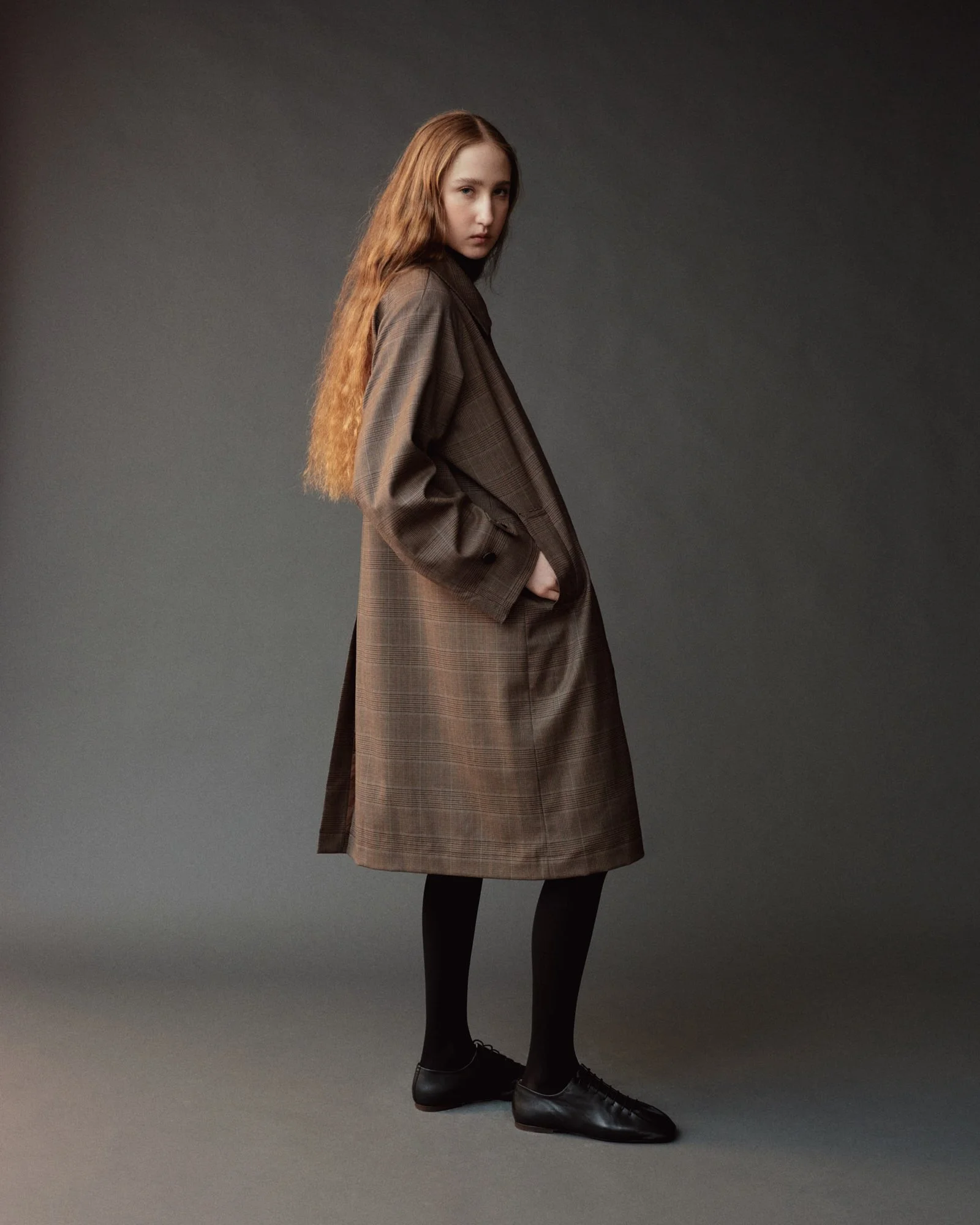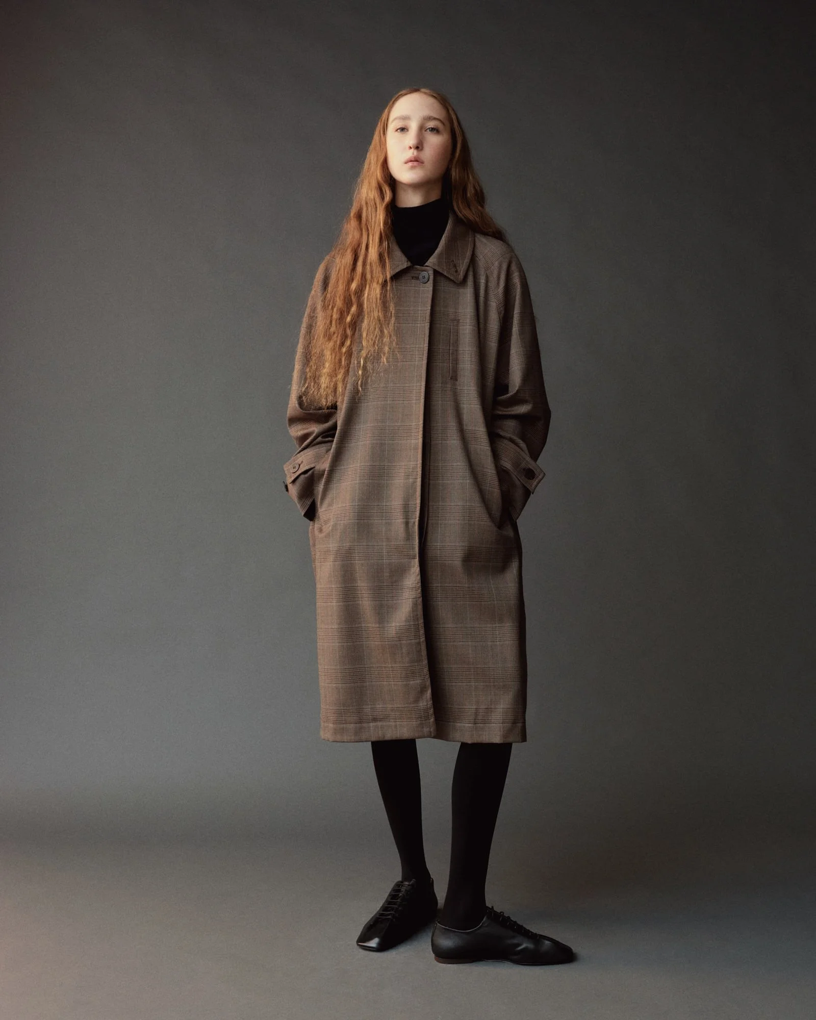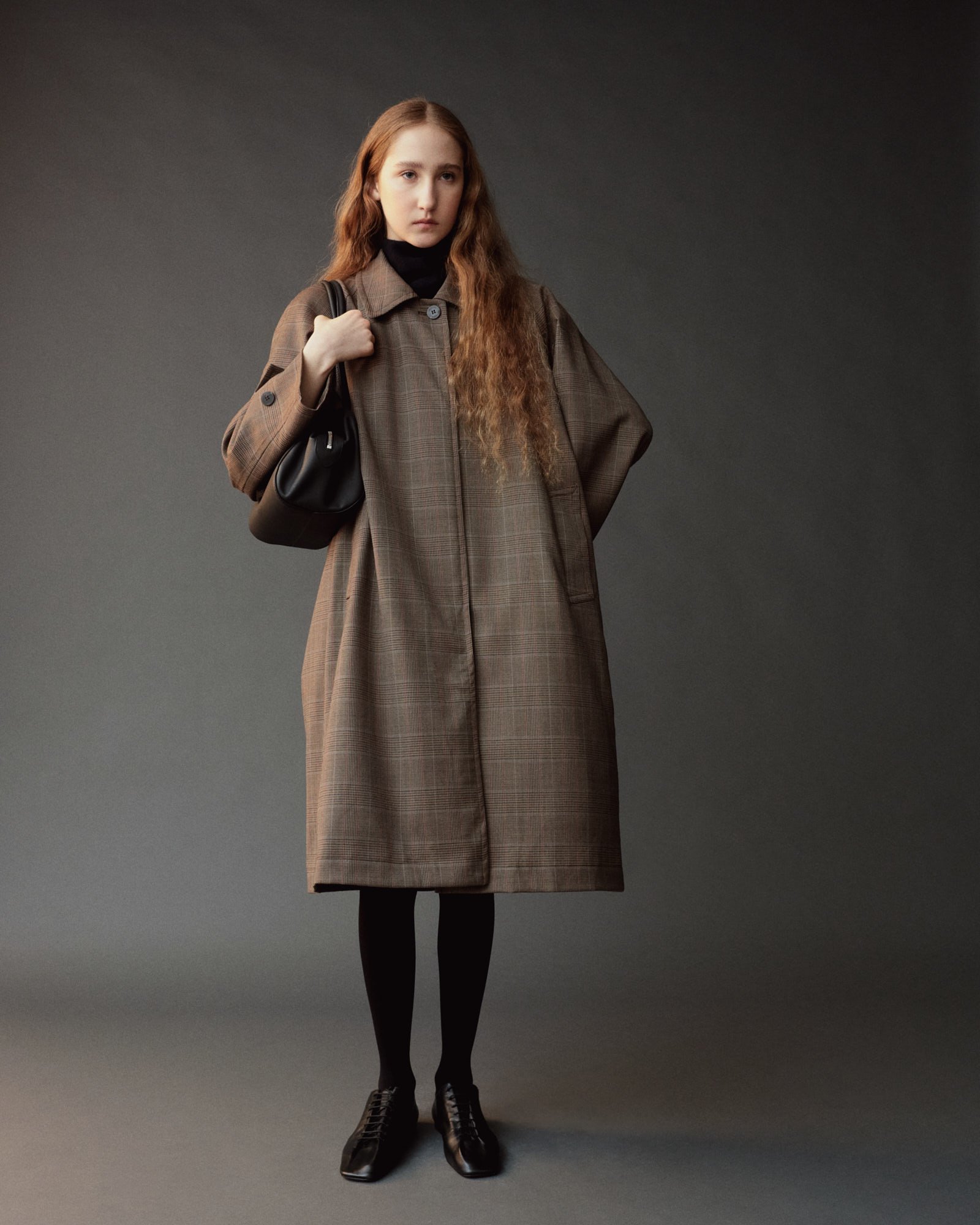WOOL BLEND PLAID TRENCH COAT - BROWN PLAID