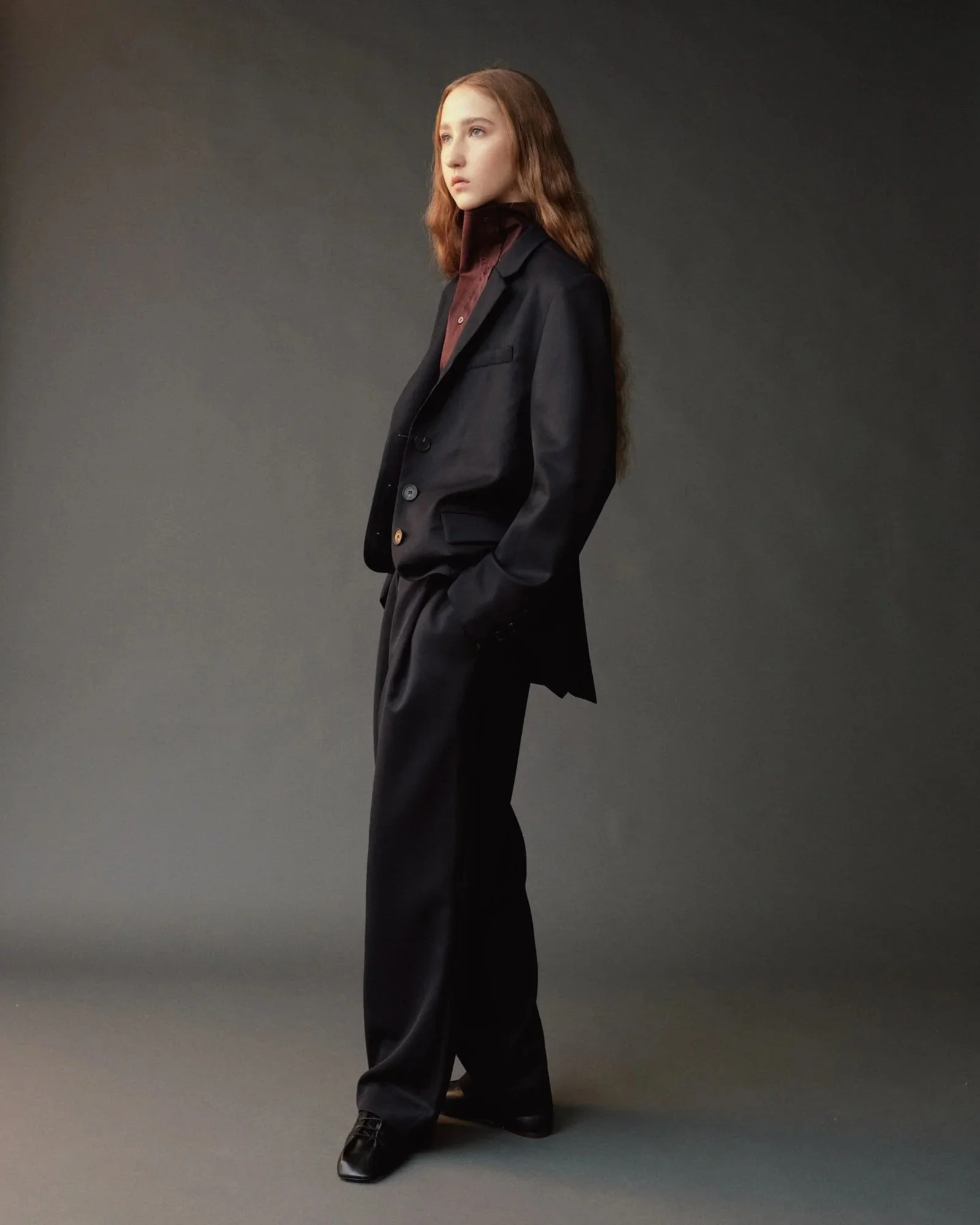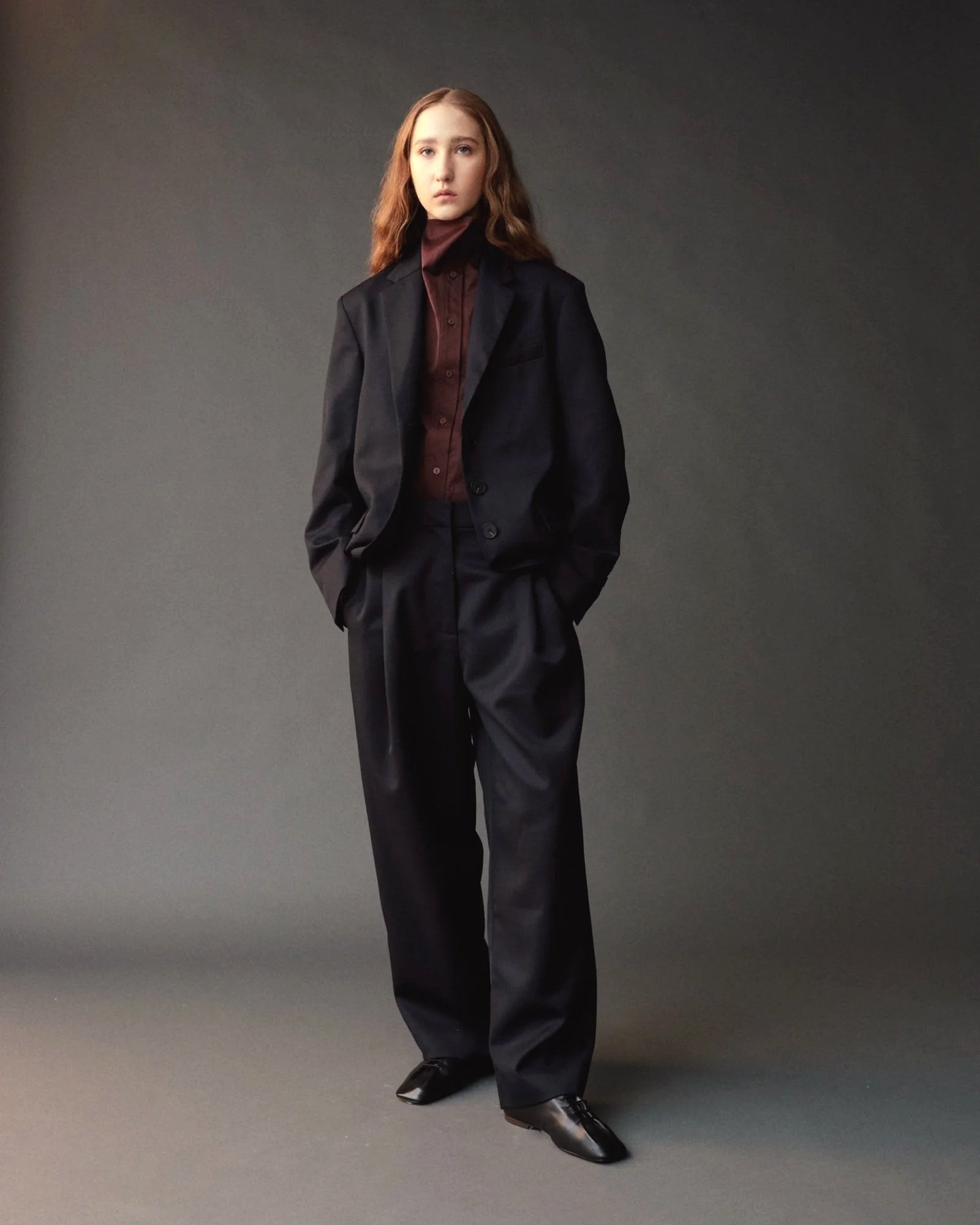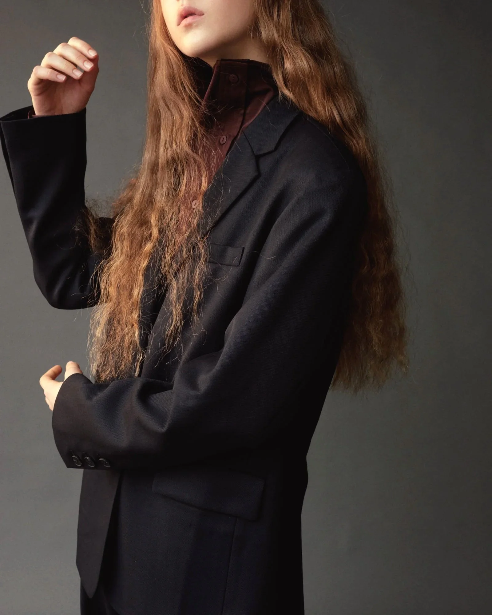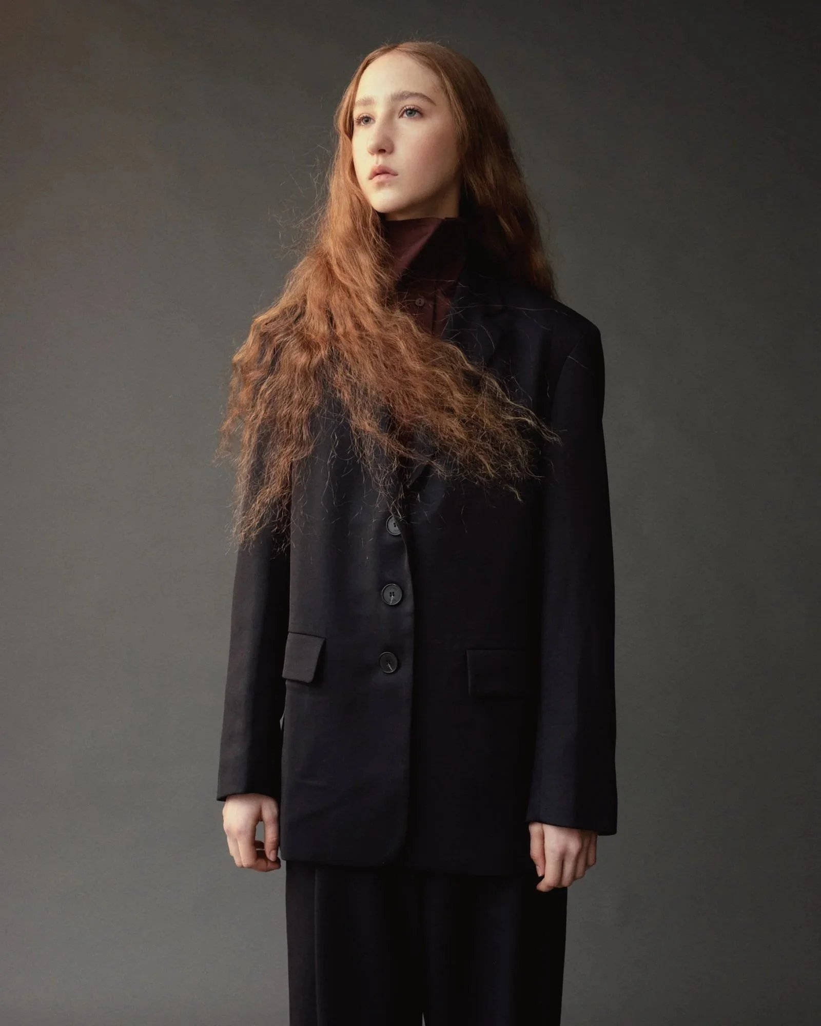 WOOL BLEND OVERSIZED JACKET - NAVY