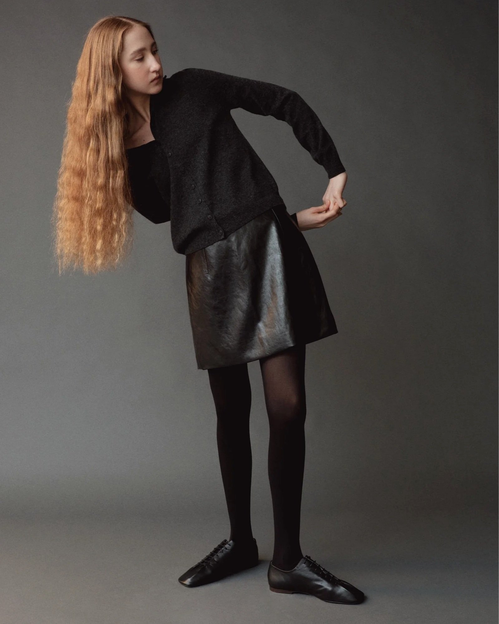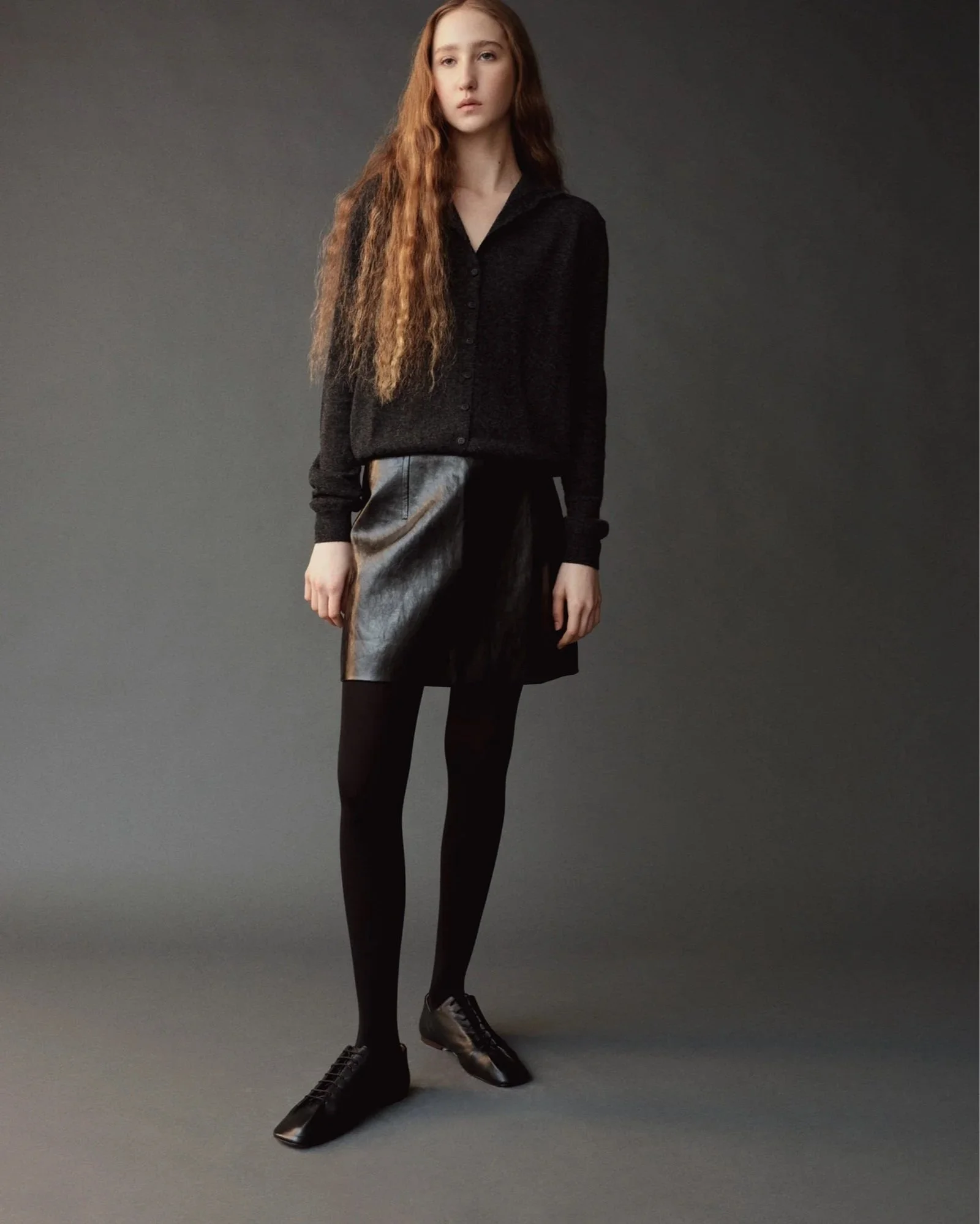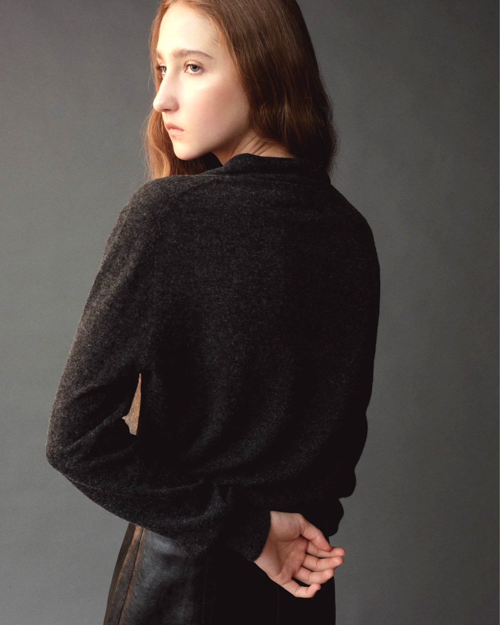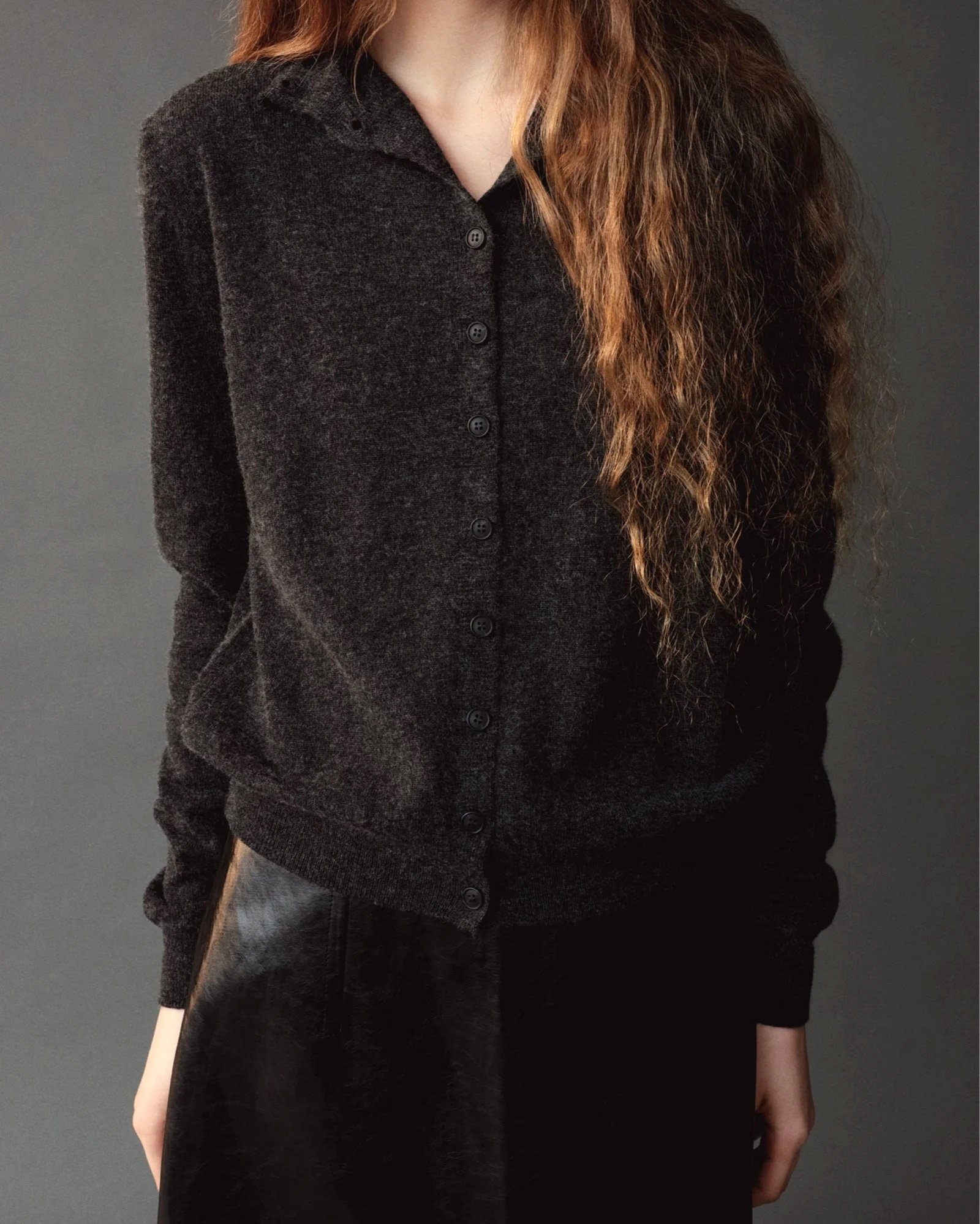 MOCK NECK CARDIGAN - CHARCOAL