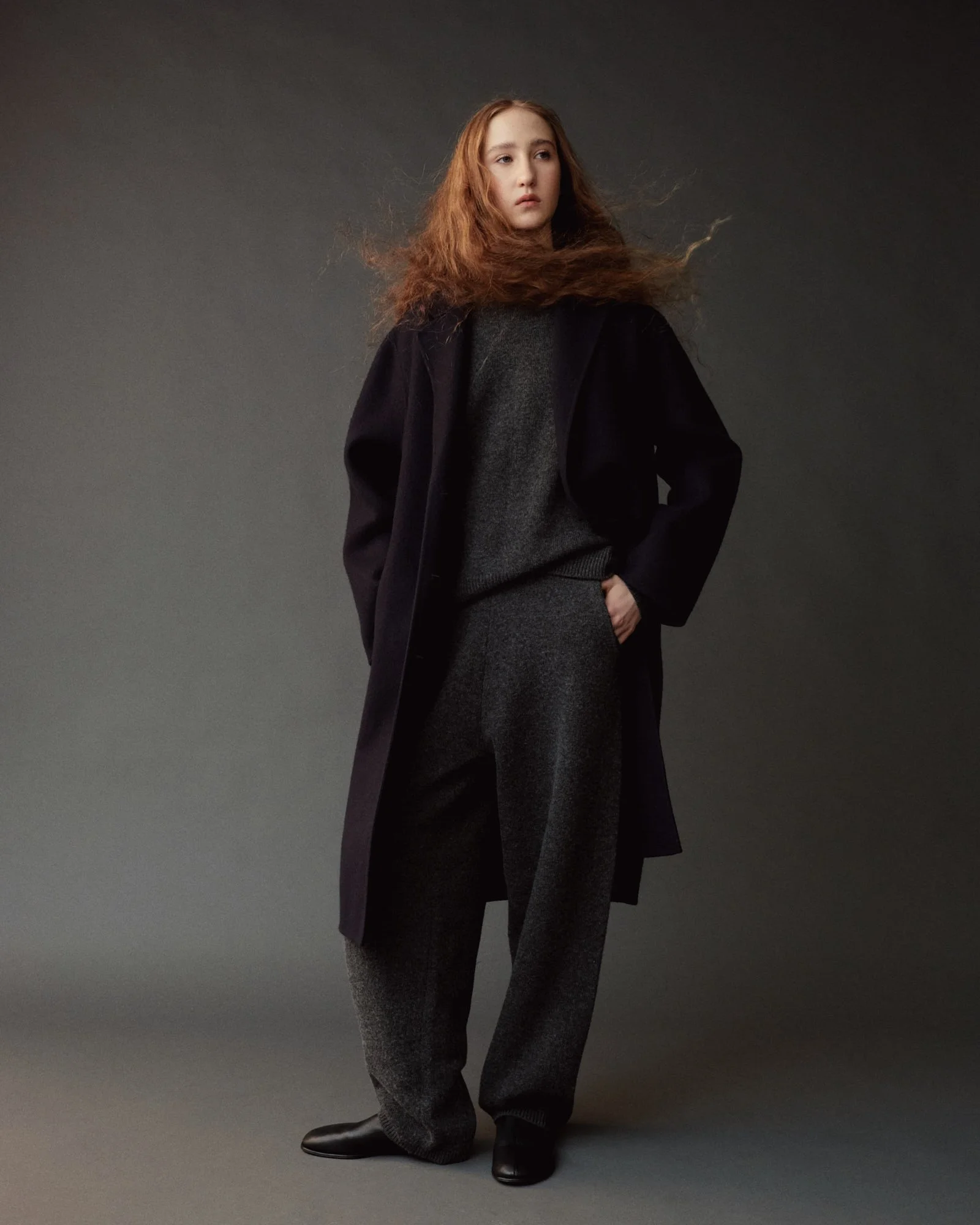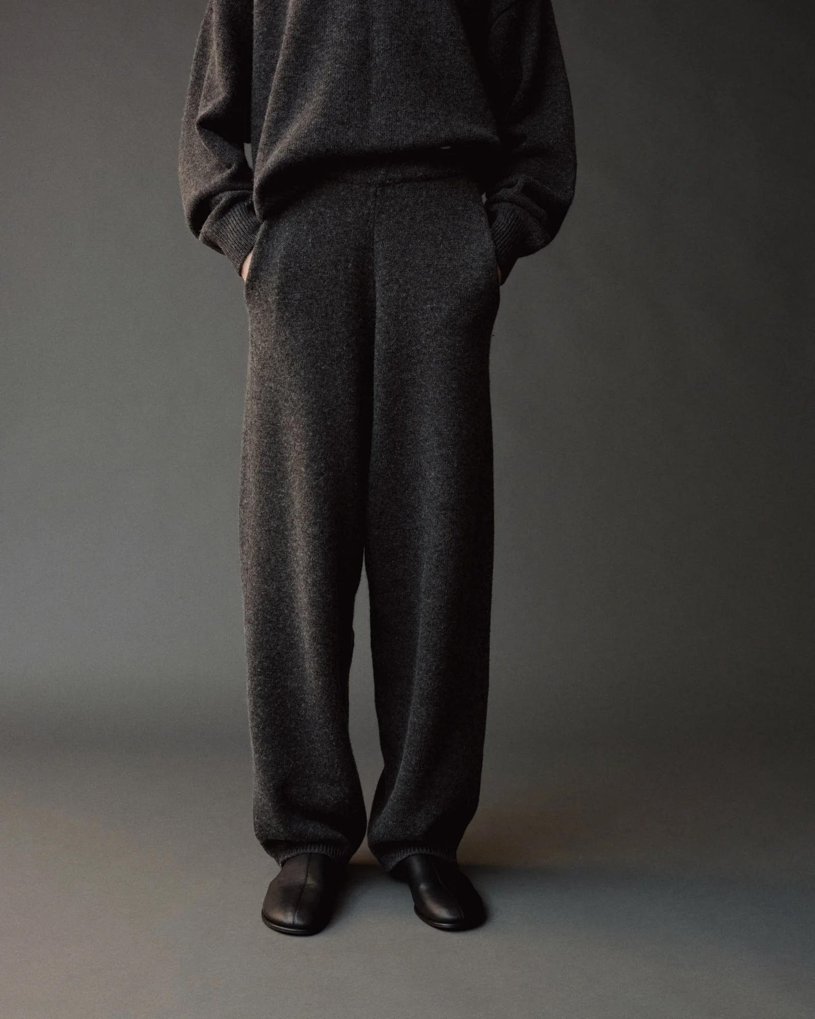 BARREL-LEG KNIT PANTS - CHARCOAL