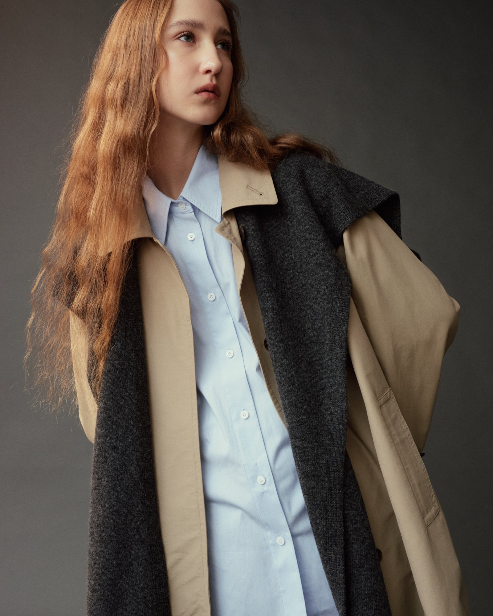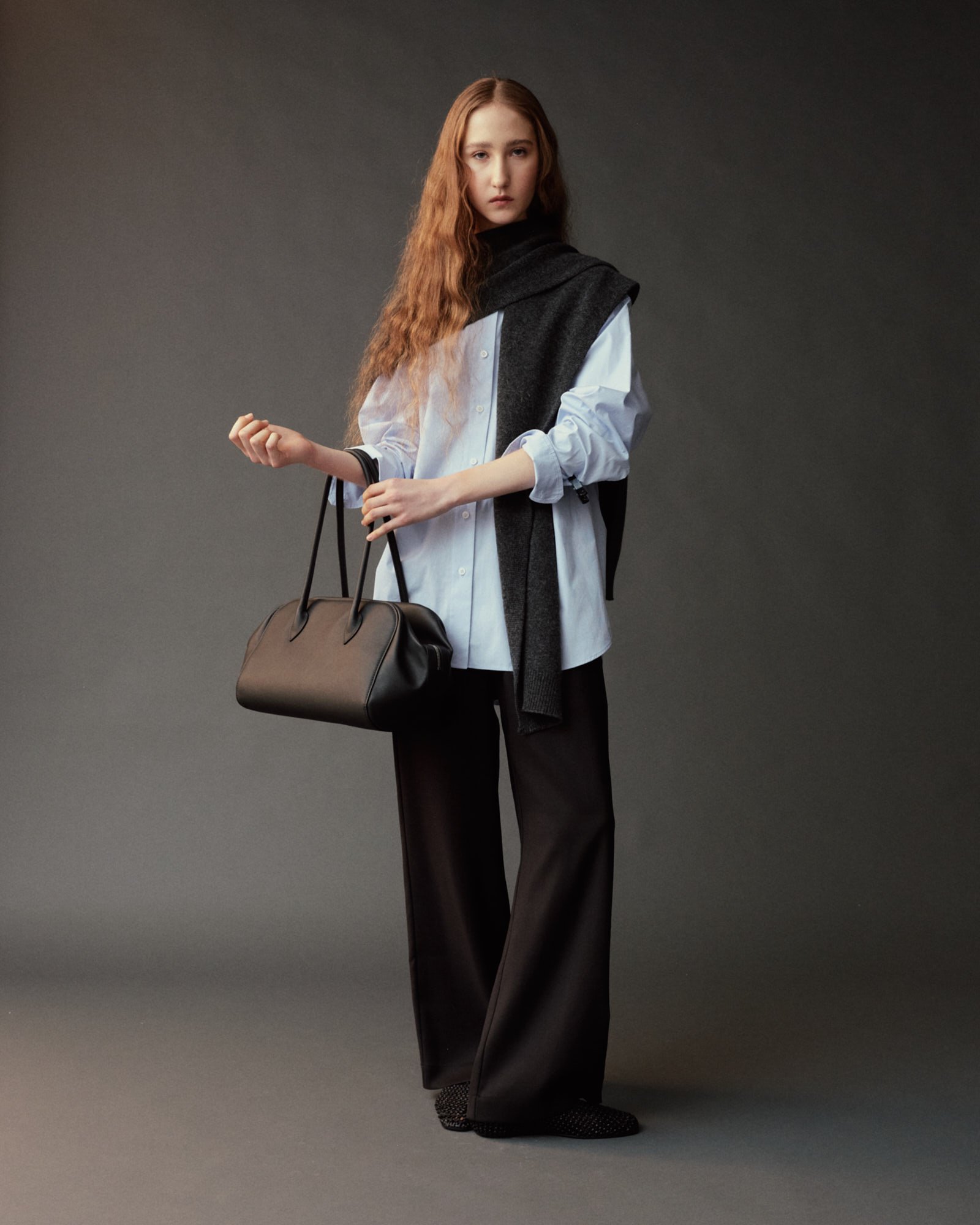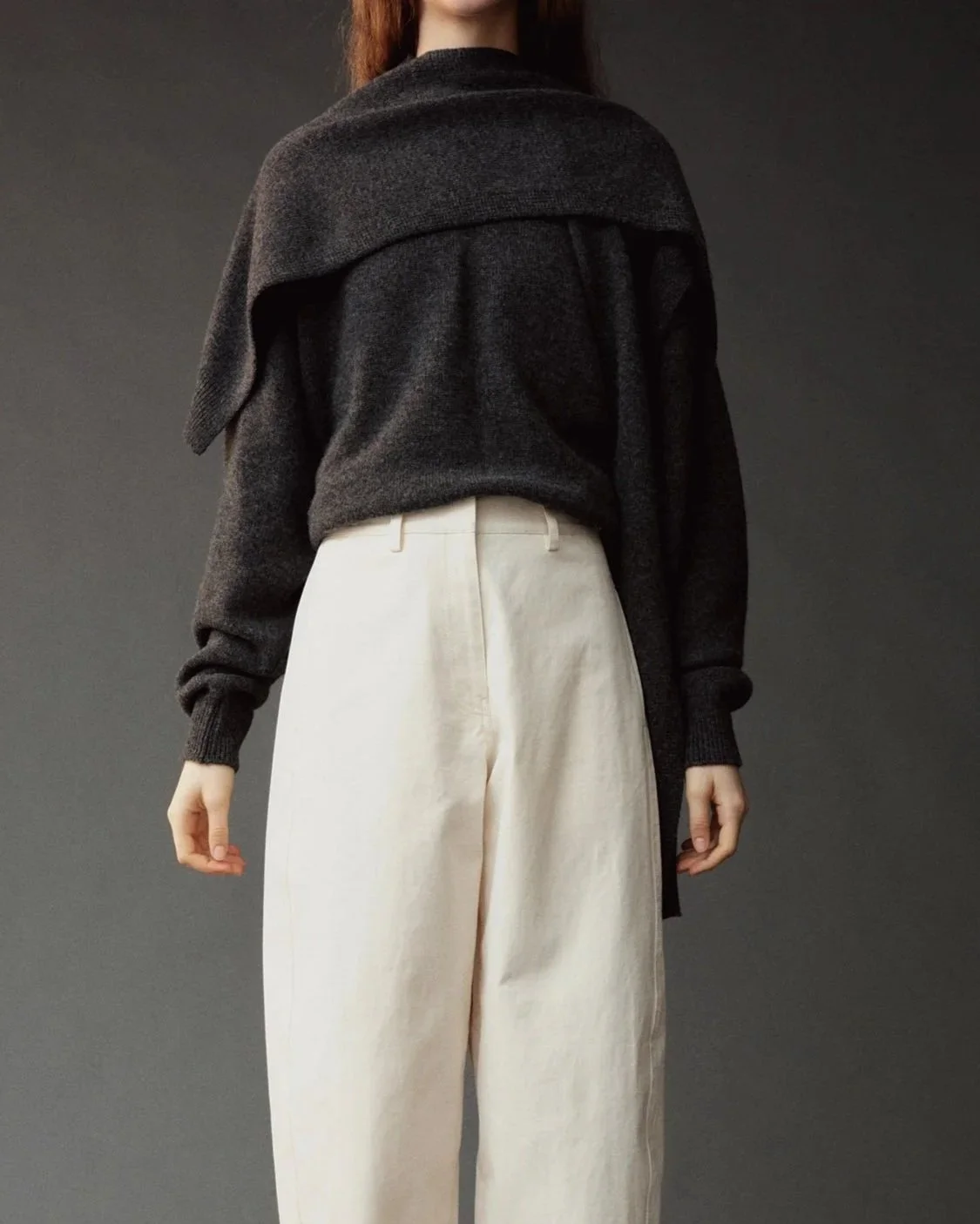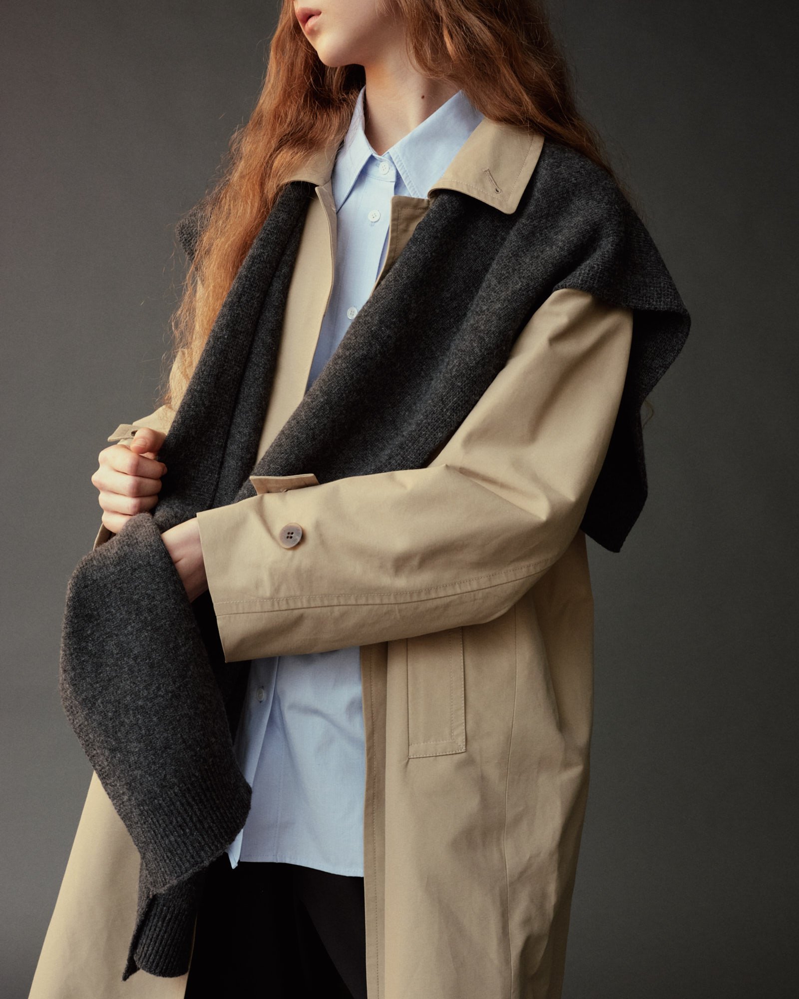 WOOL BLEND KNIT SHAWL - CHARCOAL