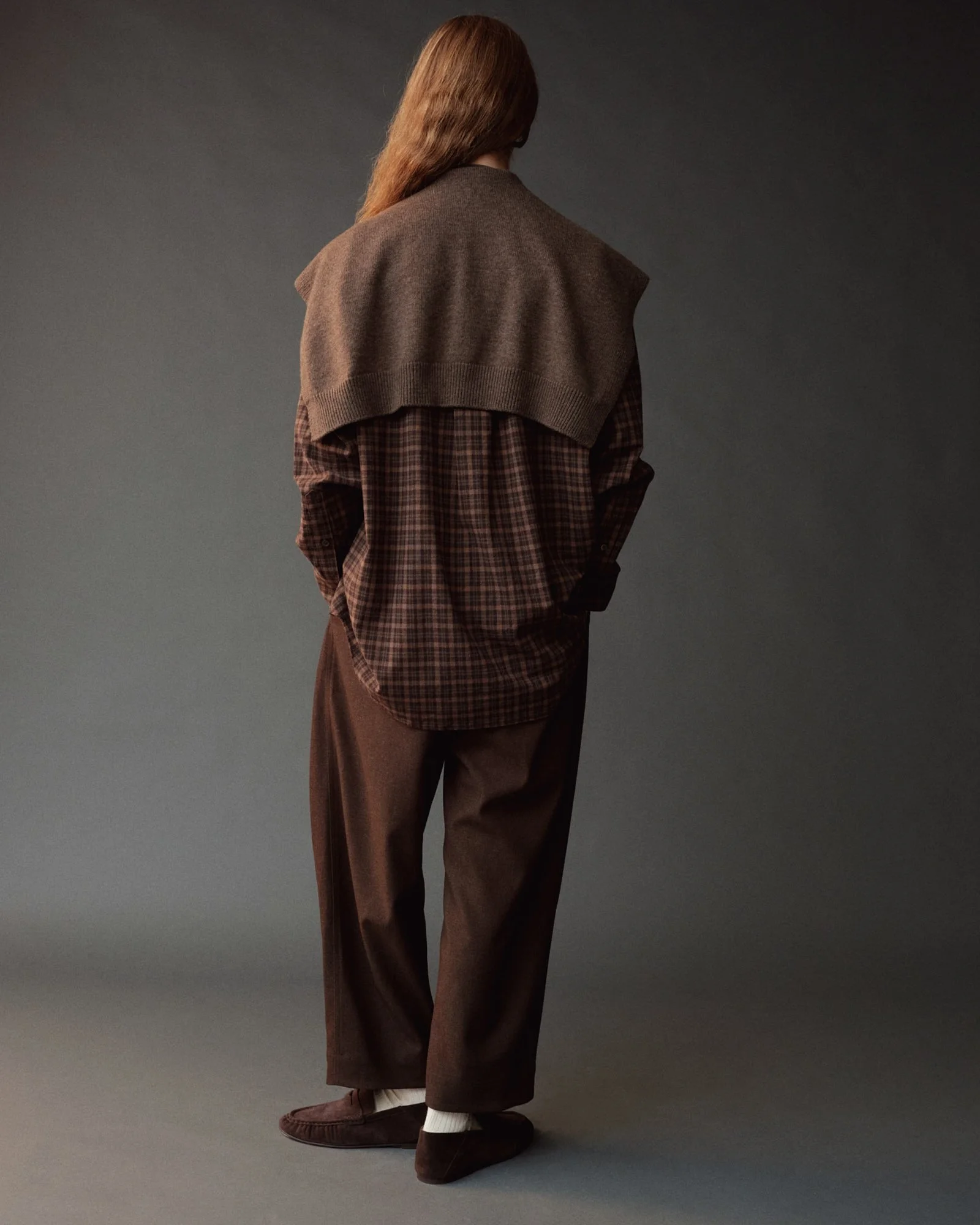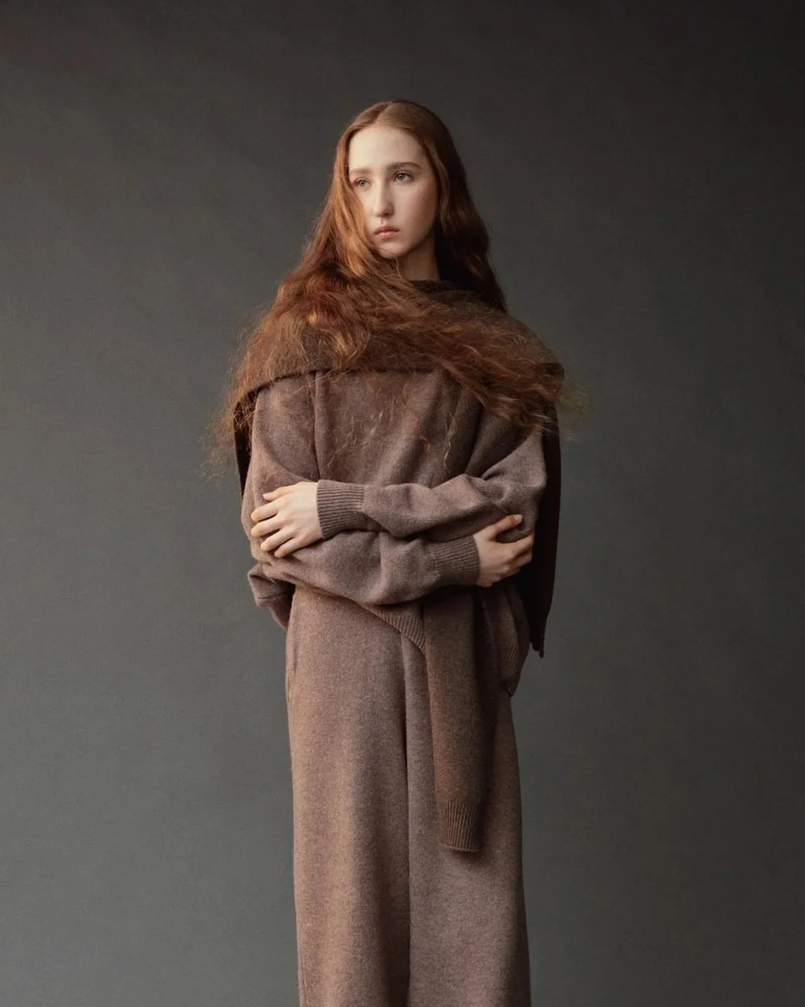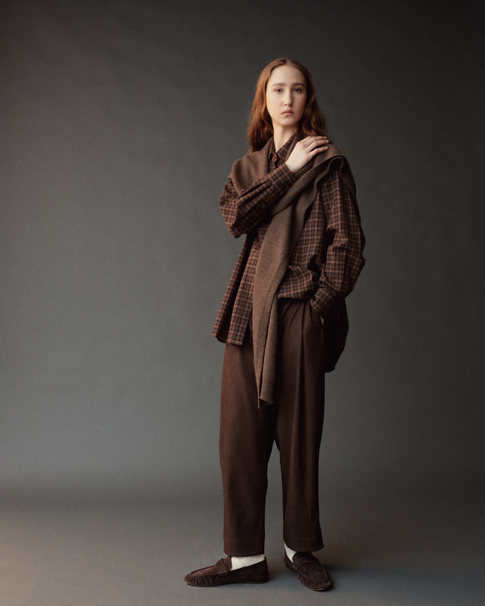 WOOL BLEND KNIT SHAWL - LIGHT BROWN