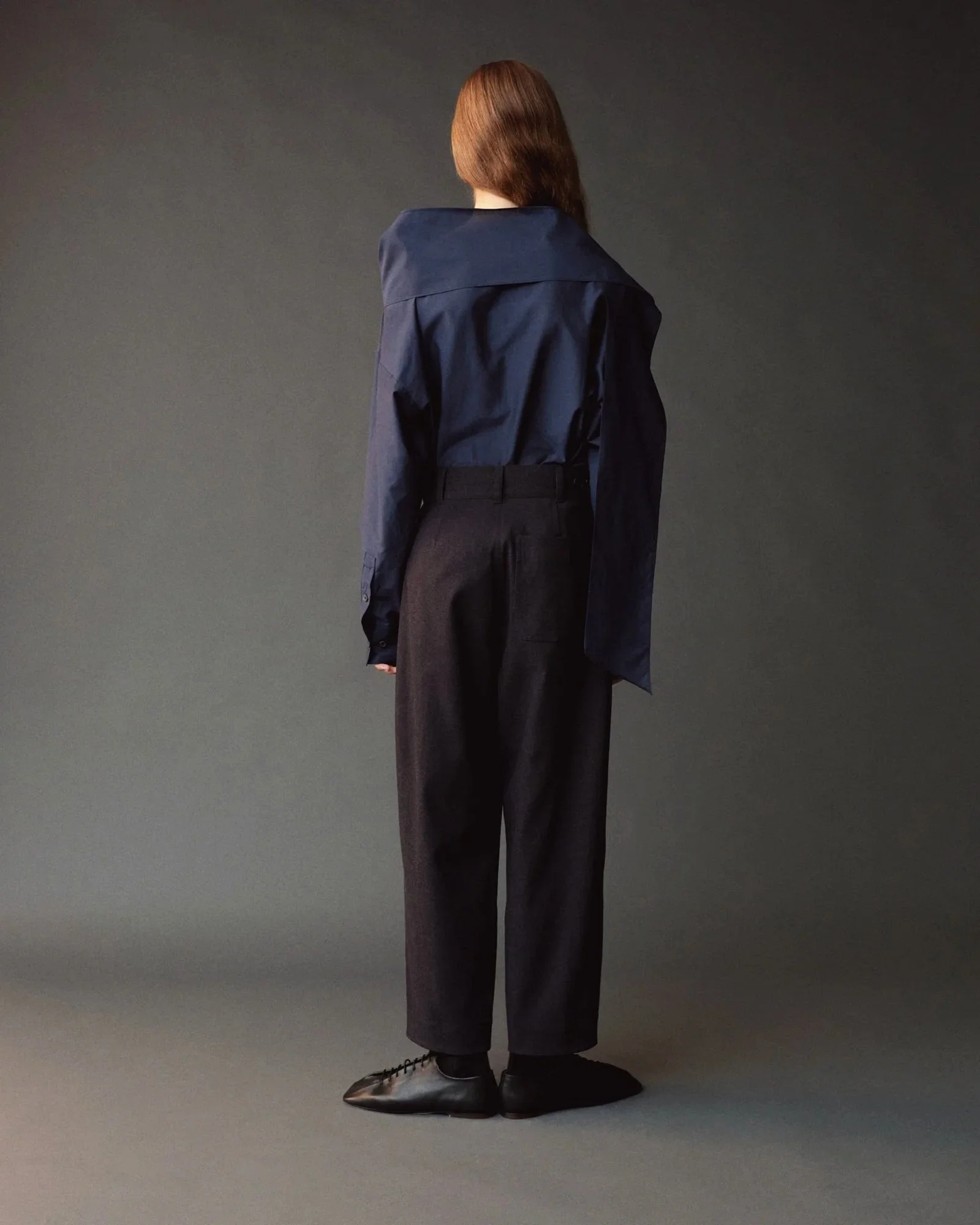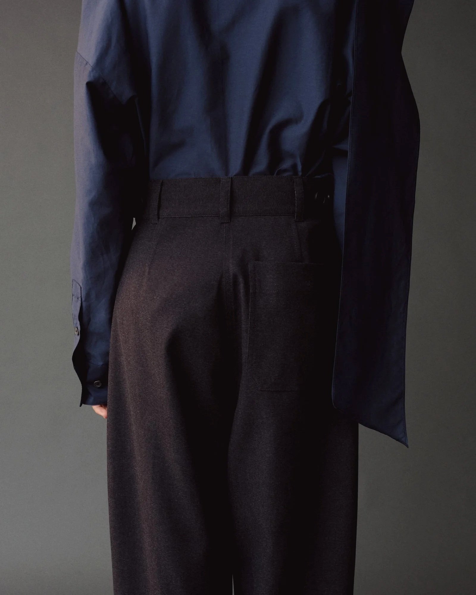 CROPPED BARREL-LEG PANTS - NAVY