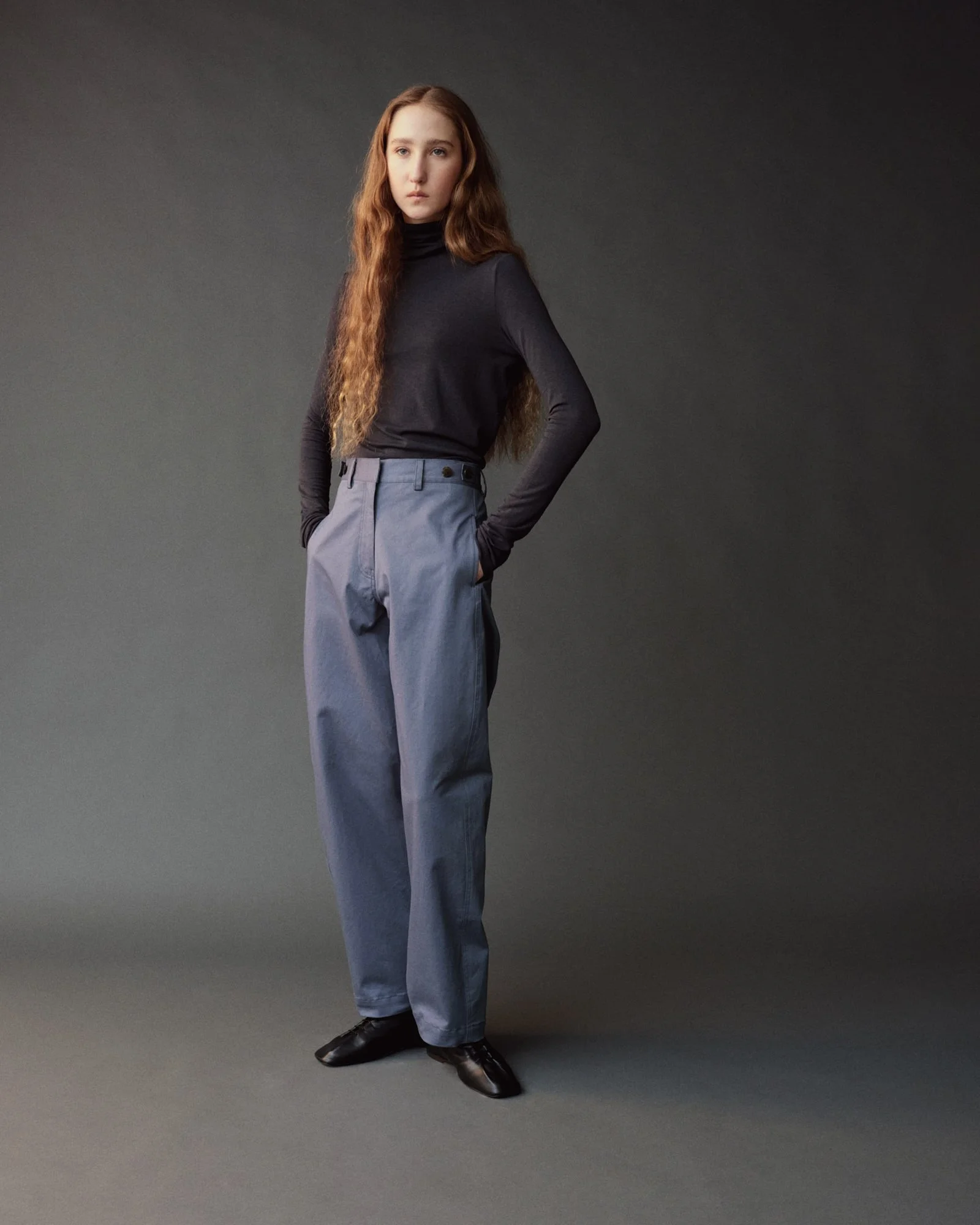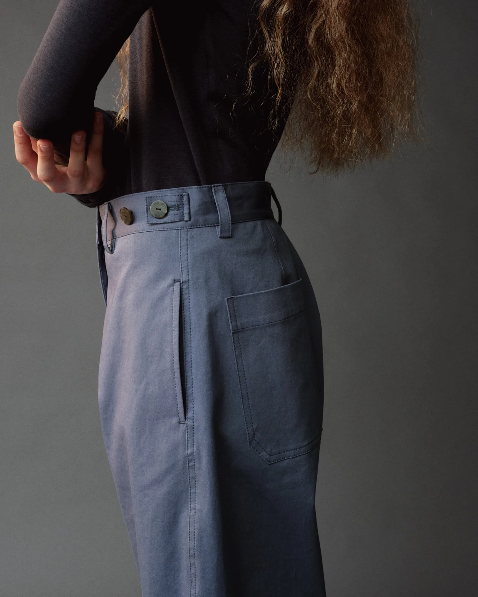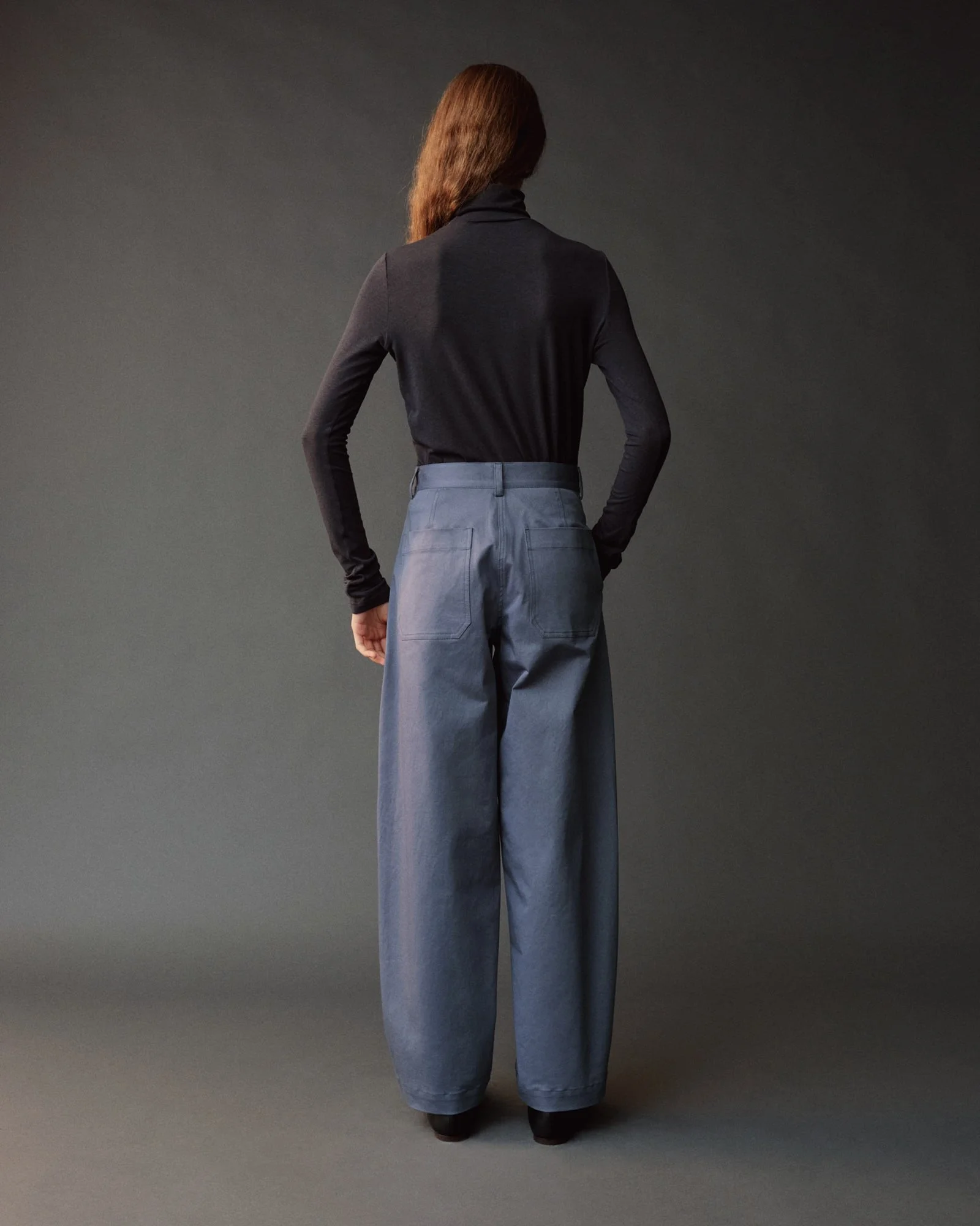 COTTON BARREL-LEG PANTS - DUSTY BLUE