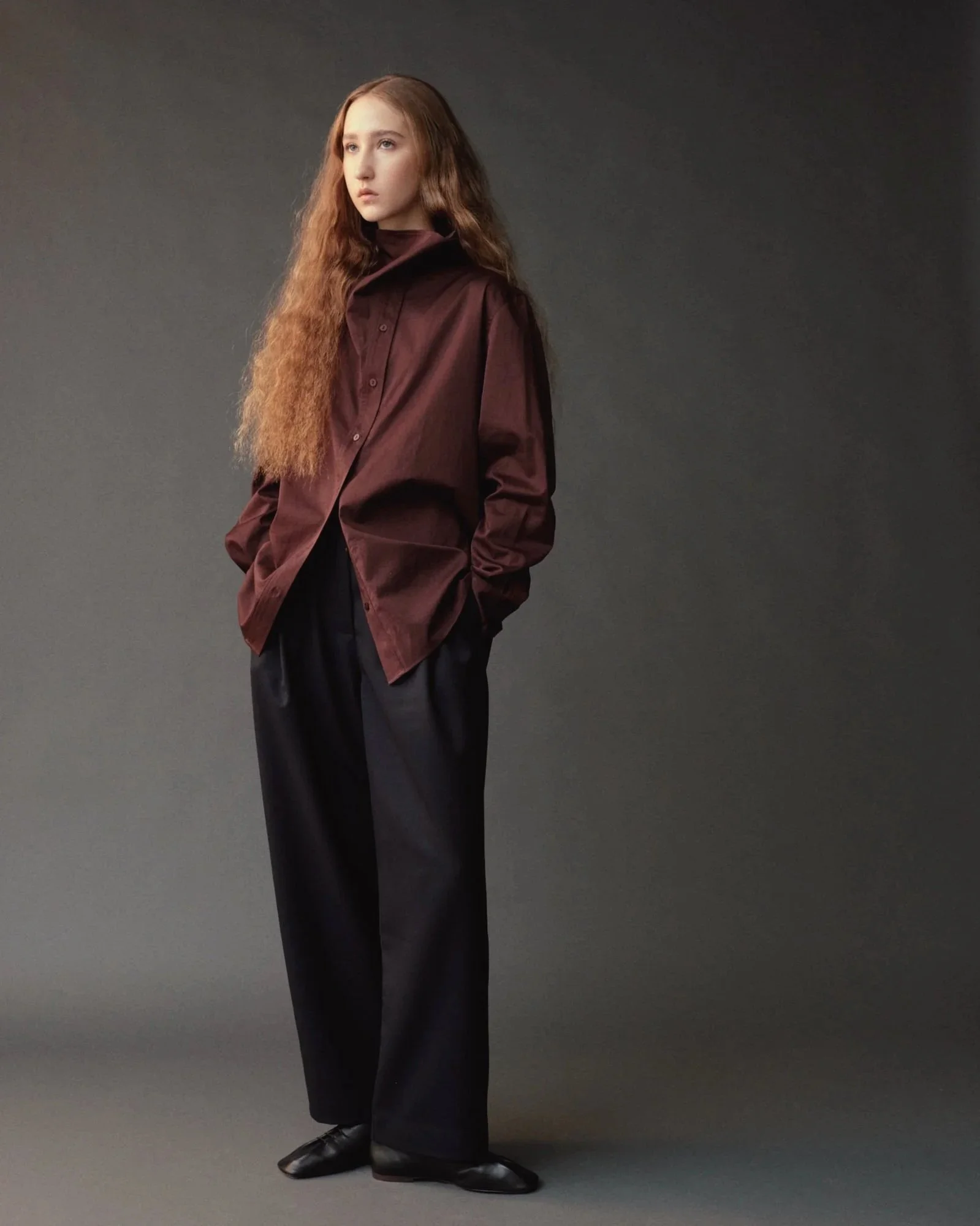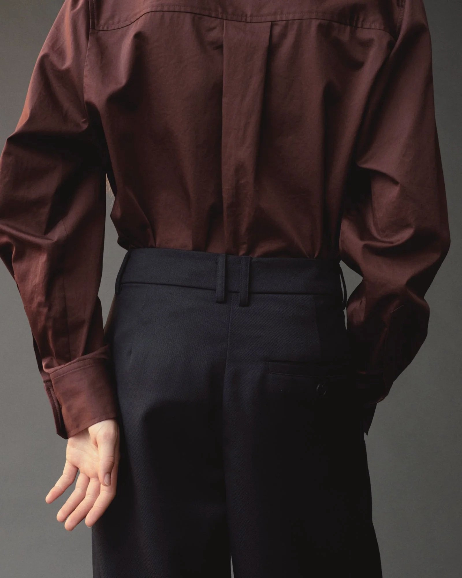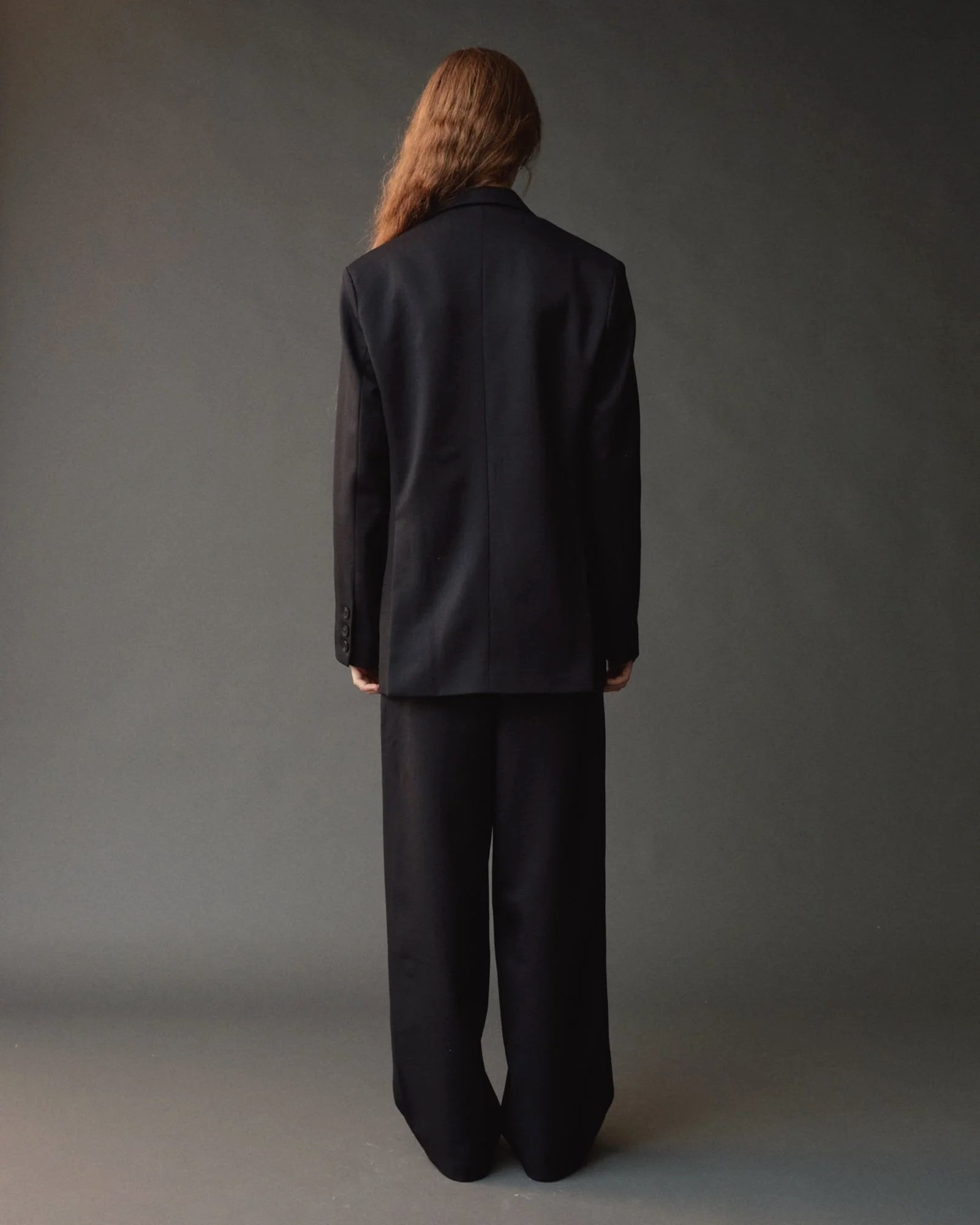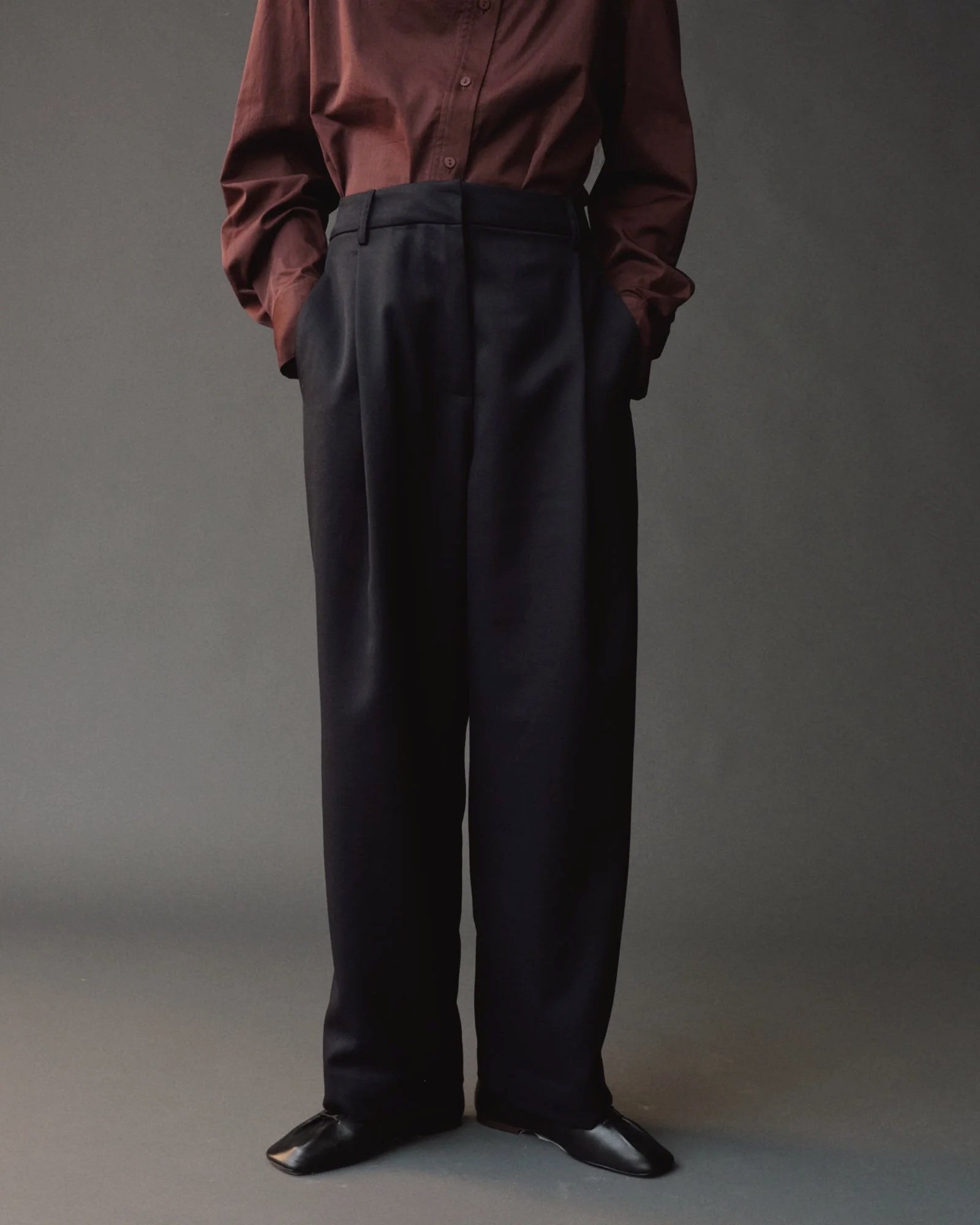 WOOL BLEND PLEATED TAILORED PANTS - NAVY