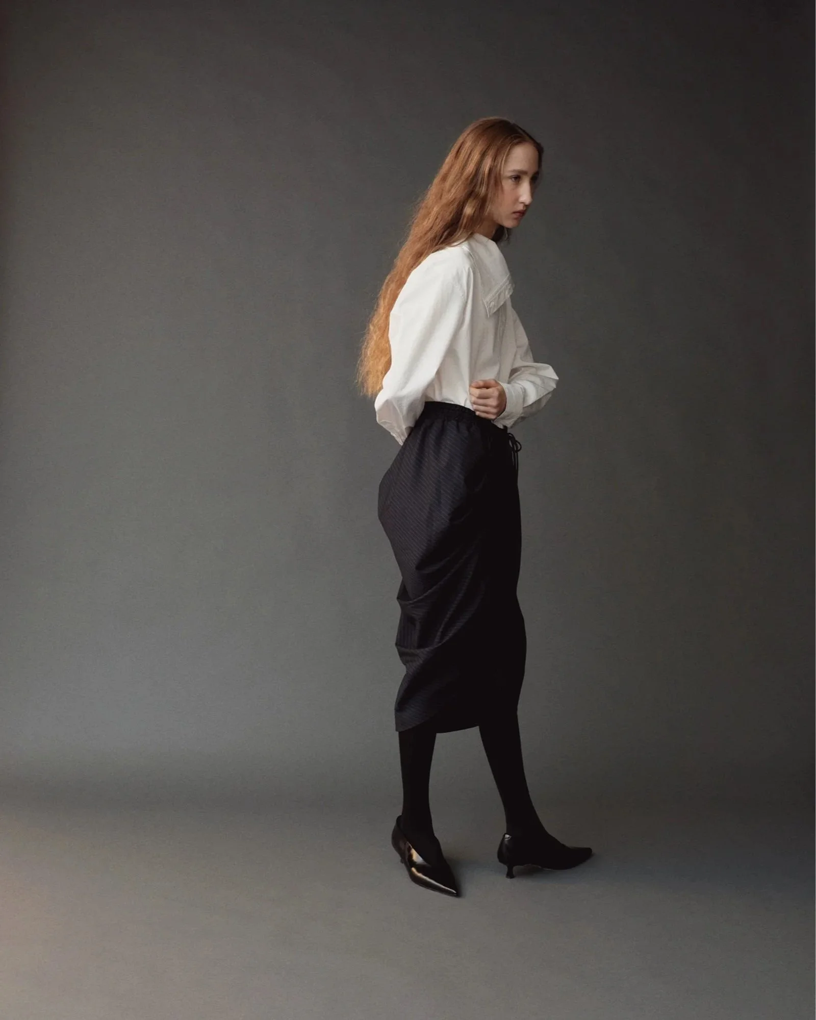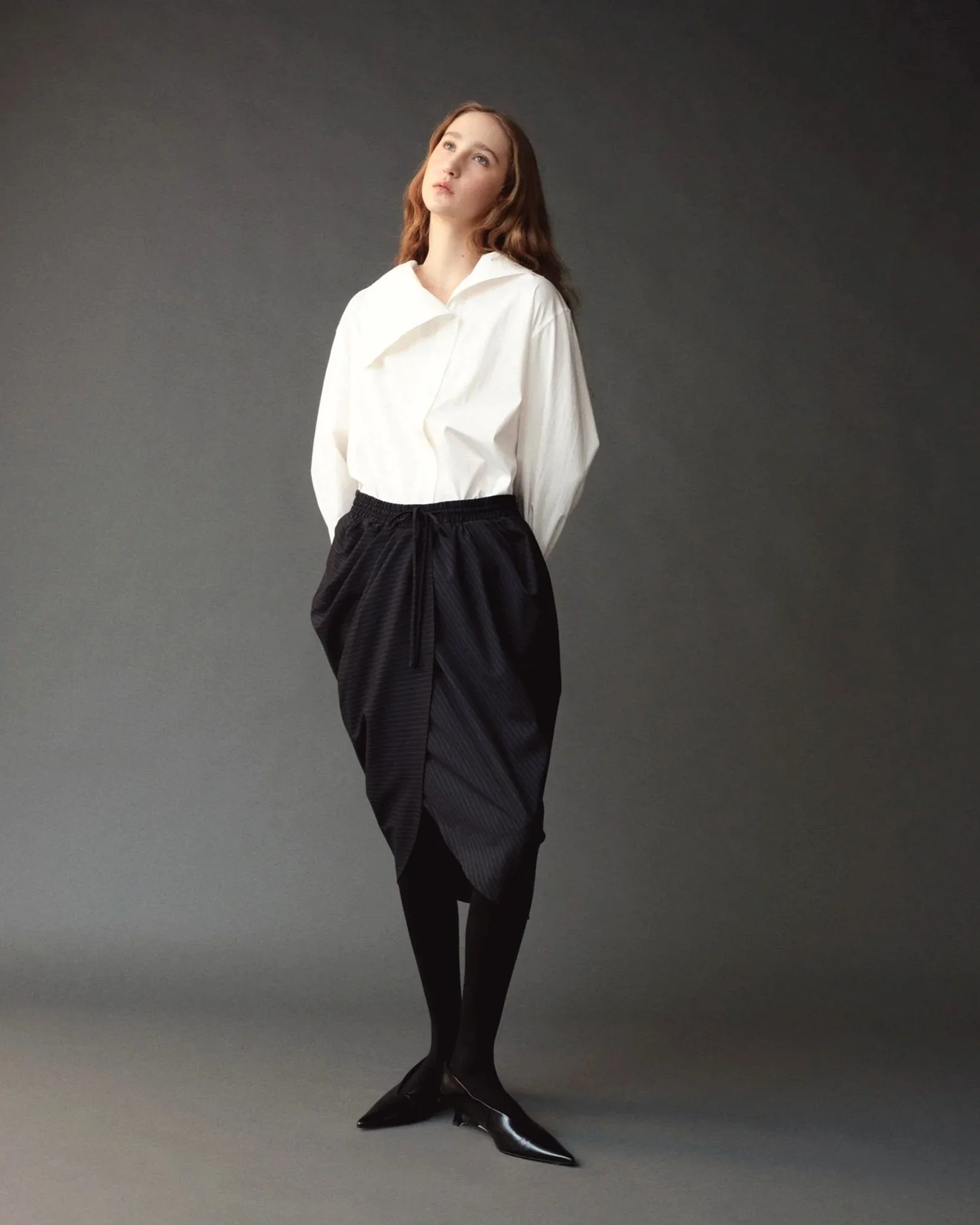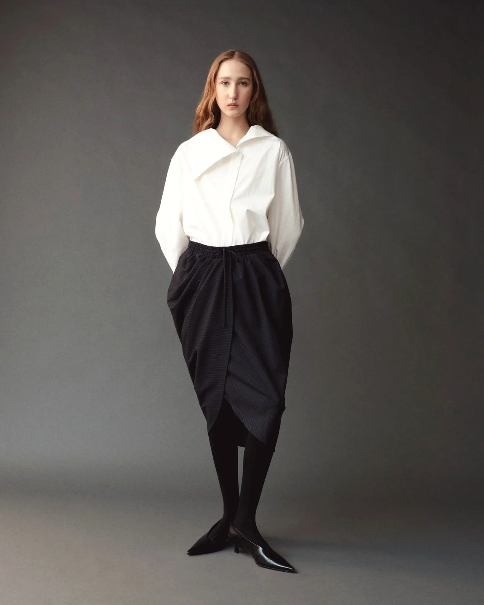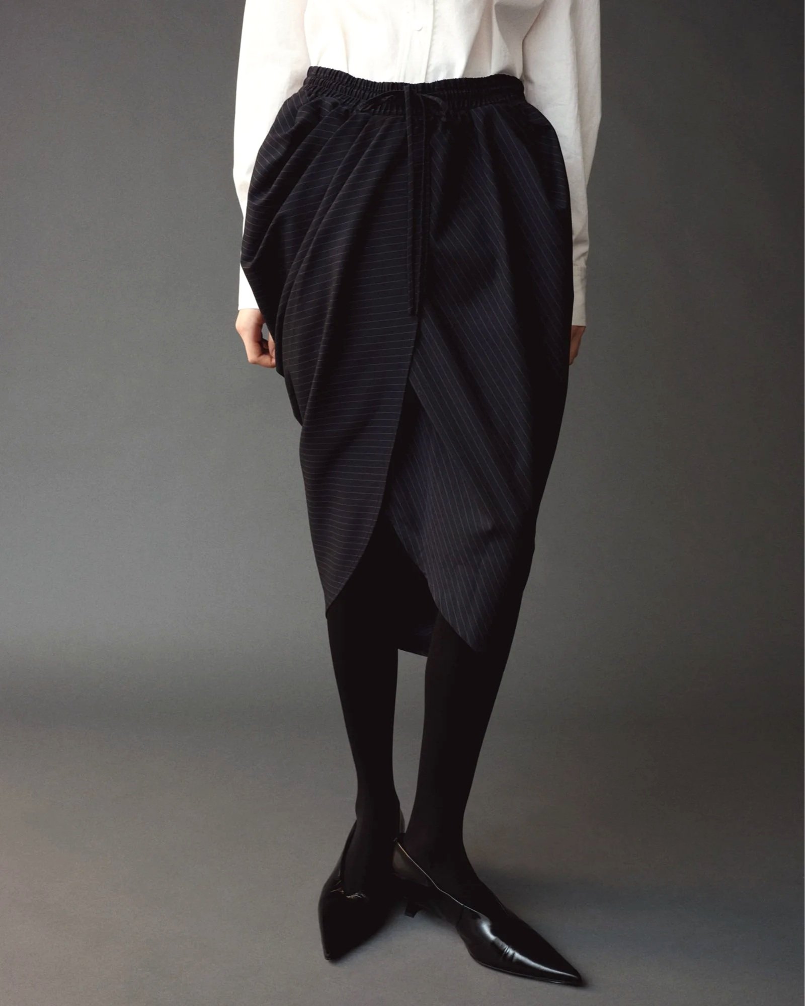 ASYMMETRIC DRAPED SKIRT - NAVY