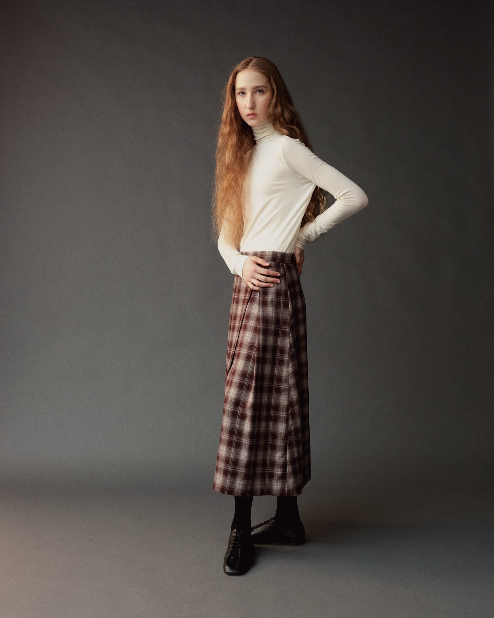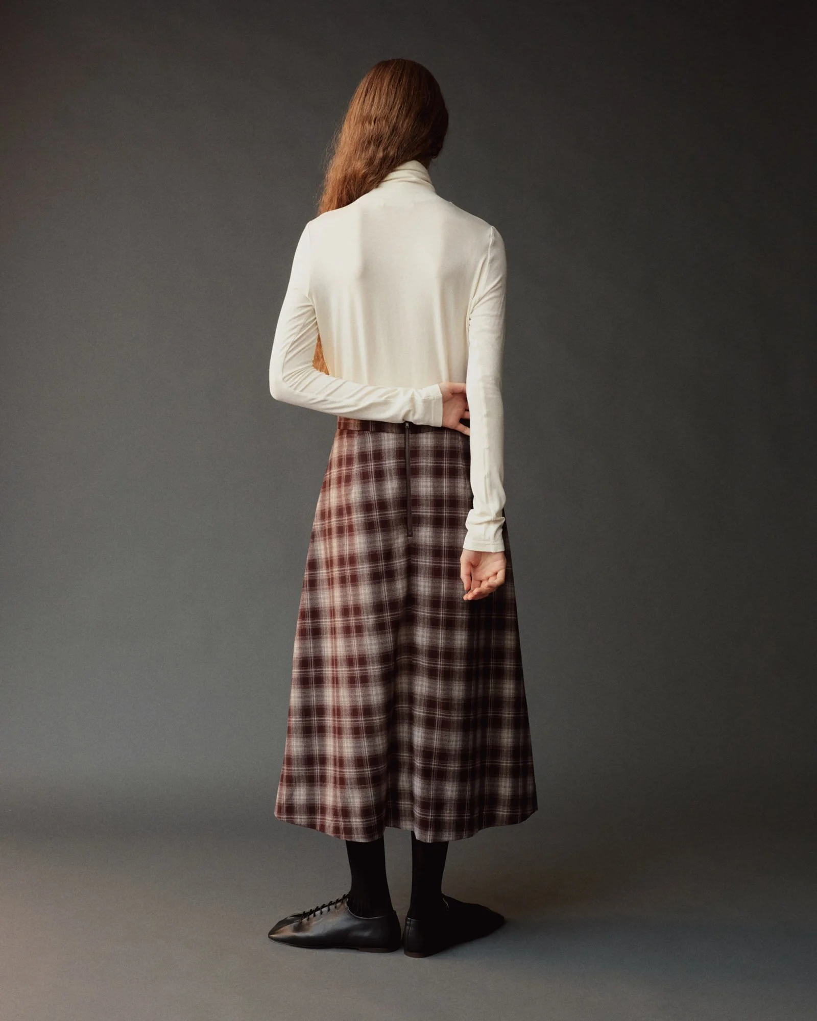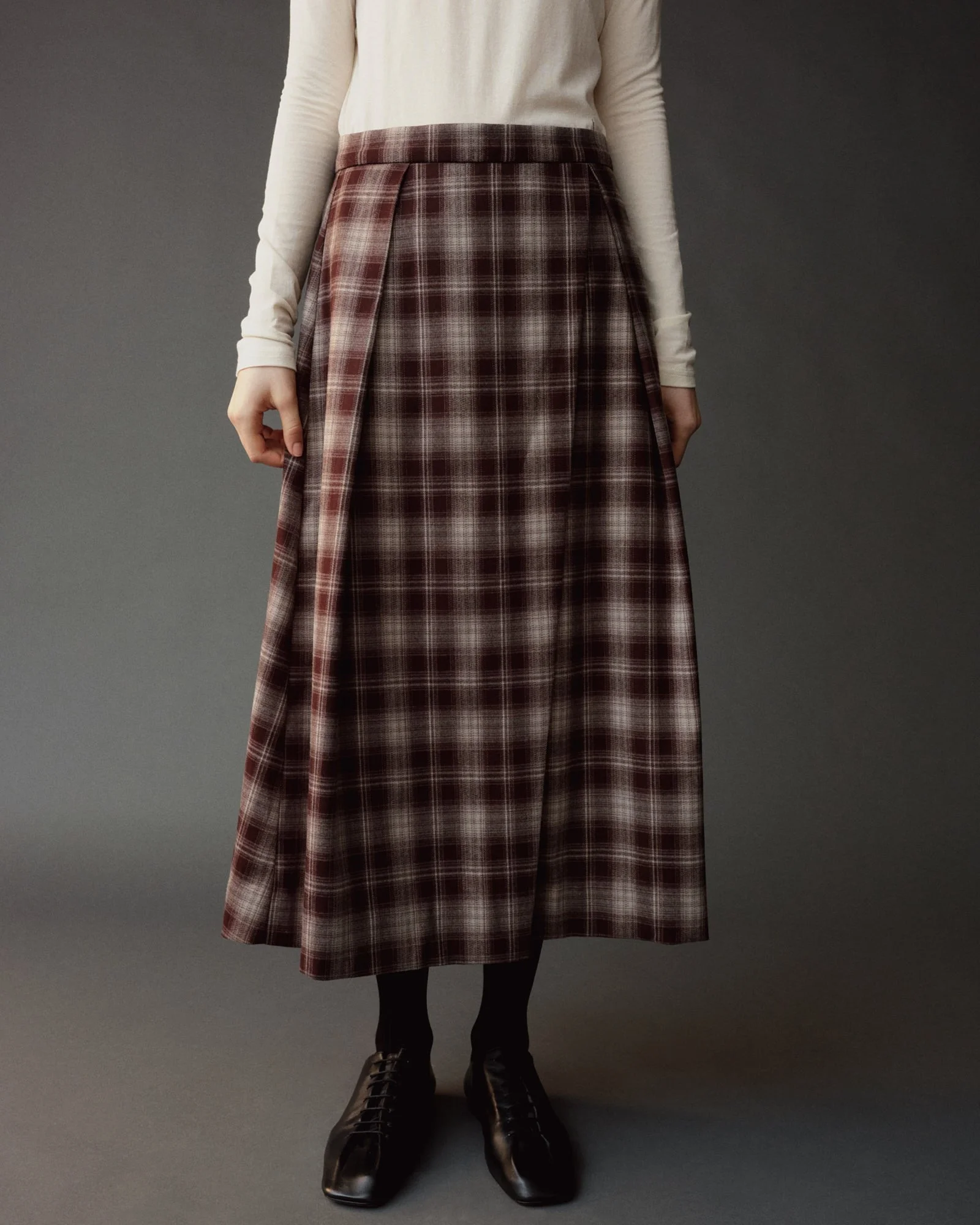 PLAID MIDI SKIRT - BROWN PLAID