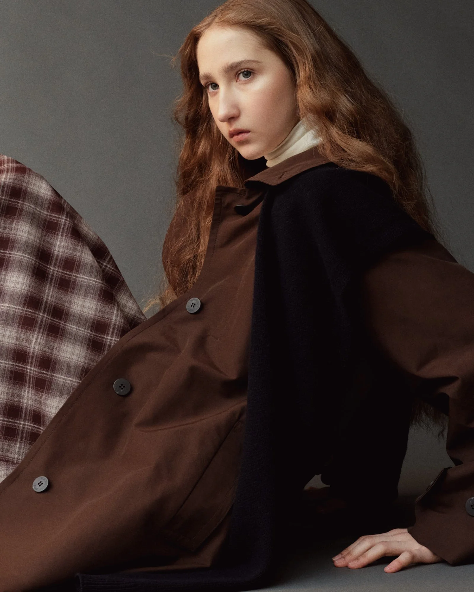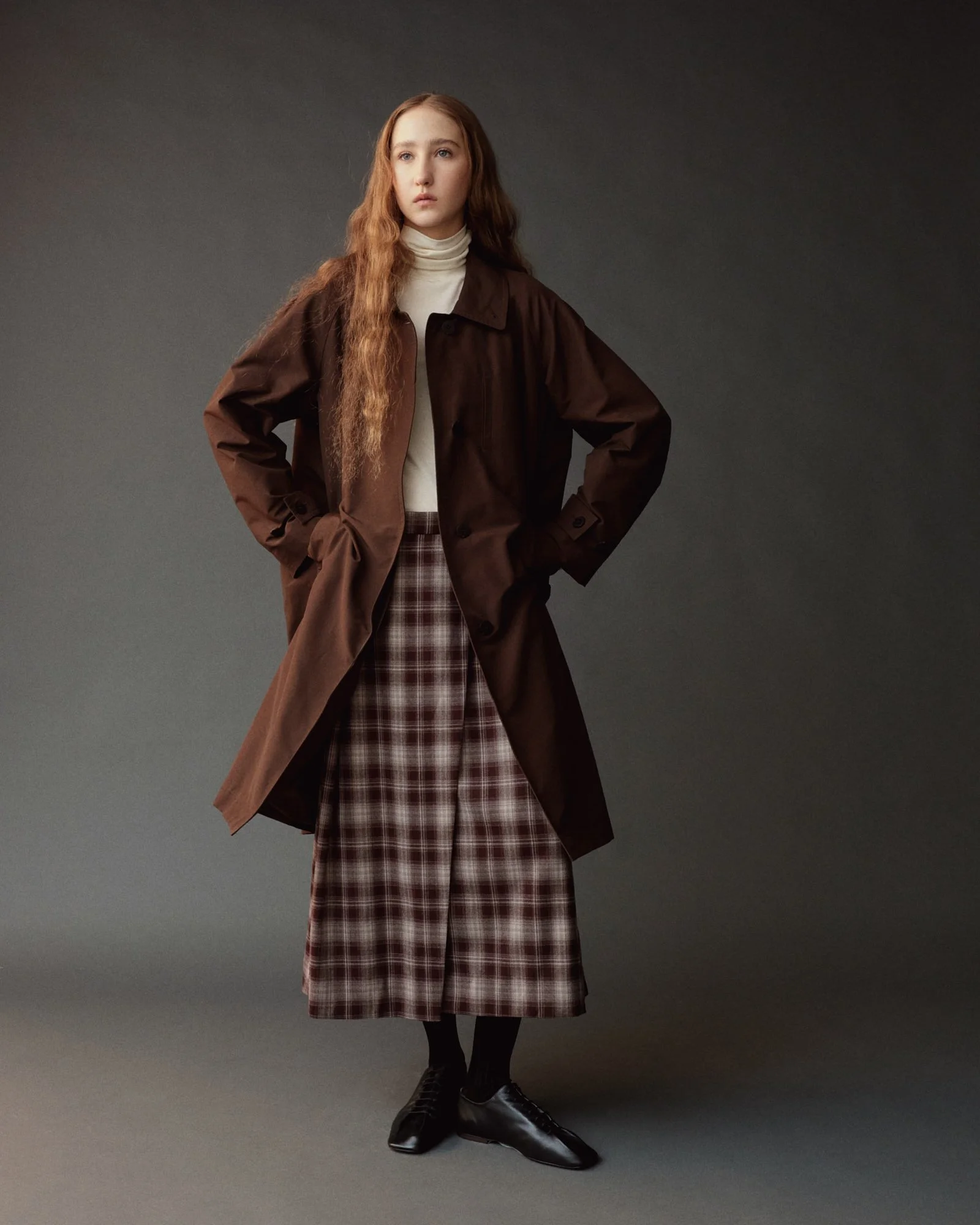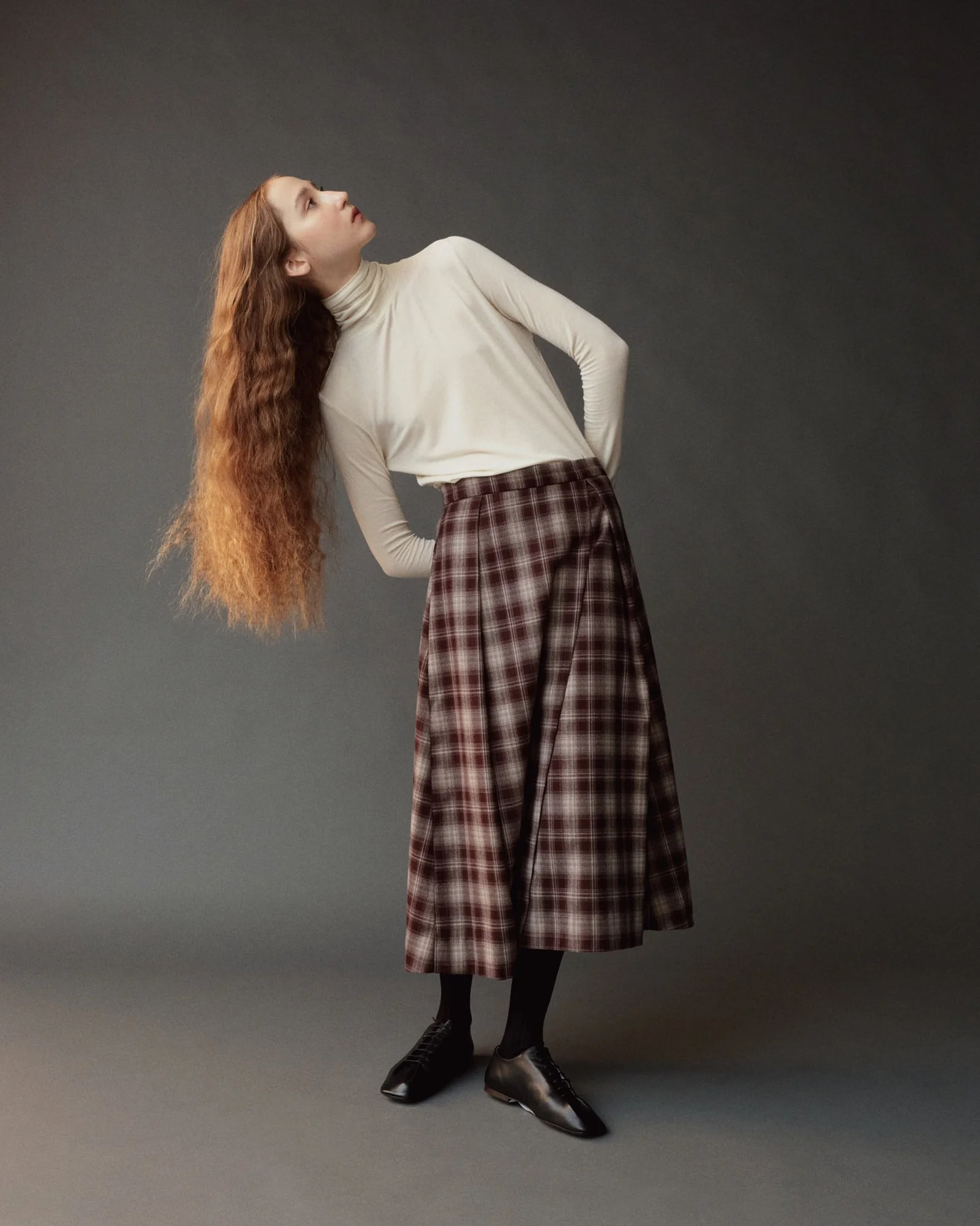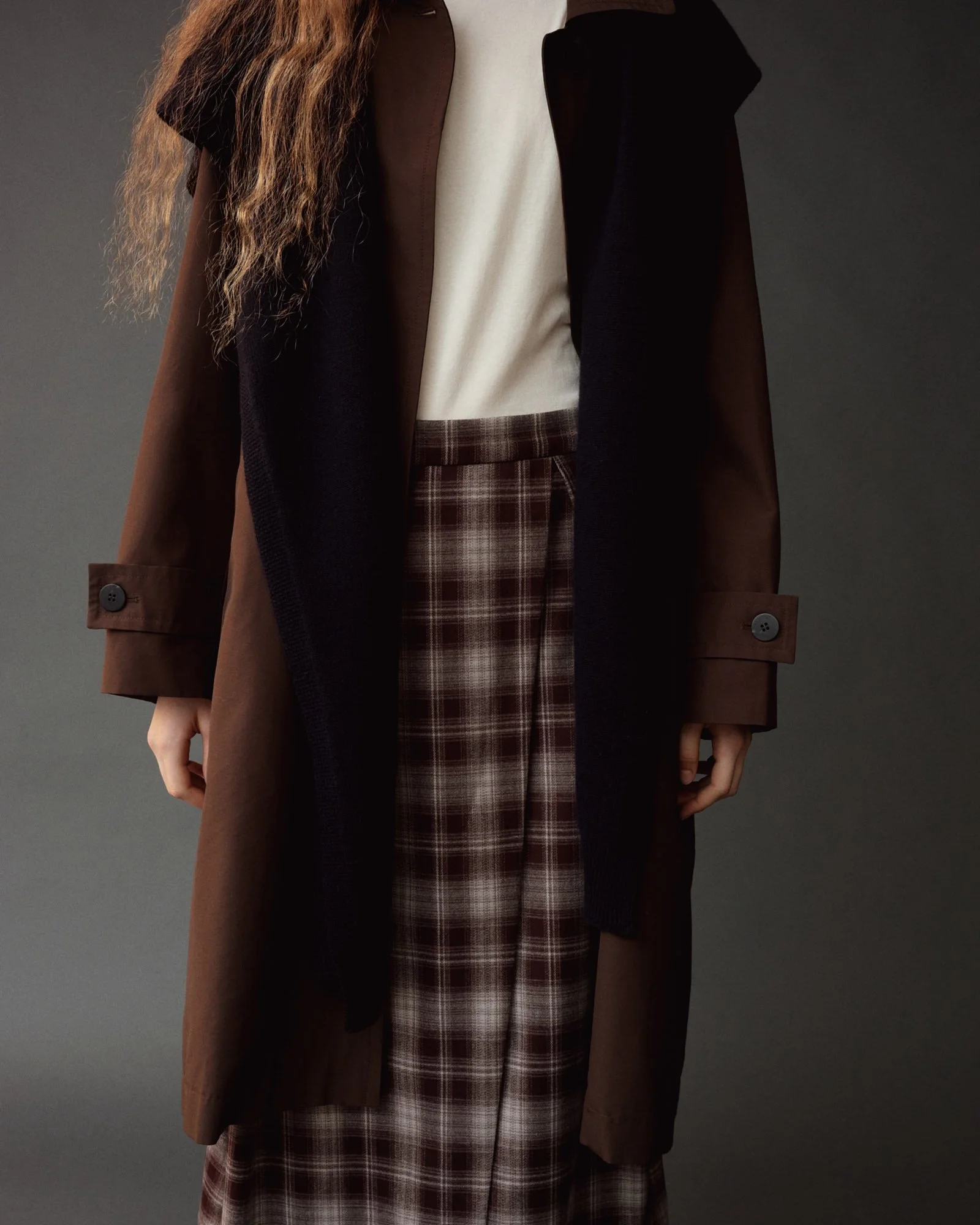 PLAID MIDI SKIRT - BROWN PLAID