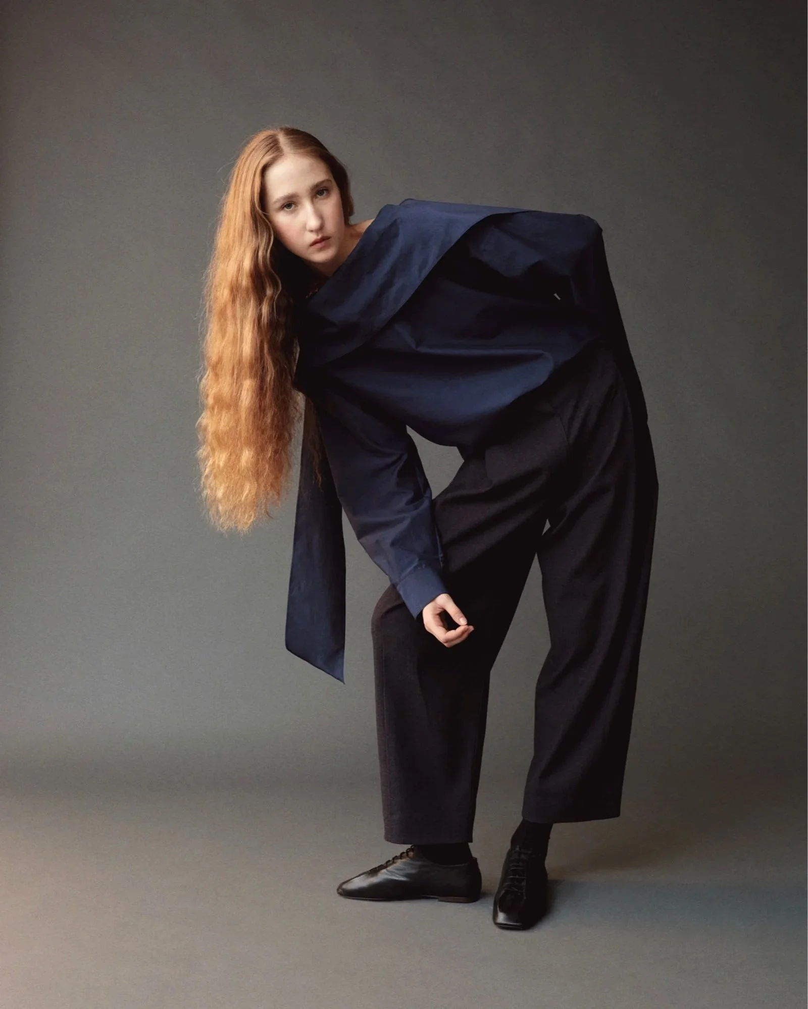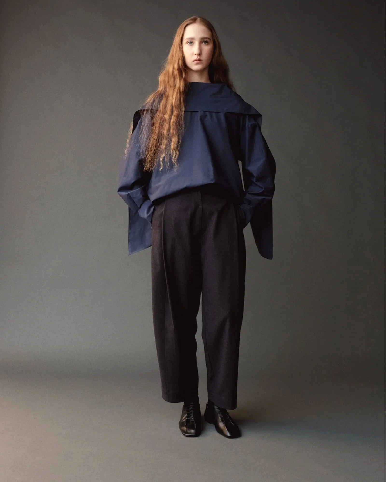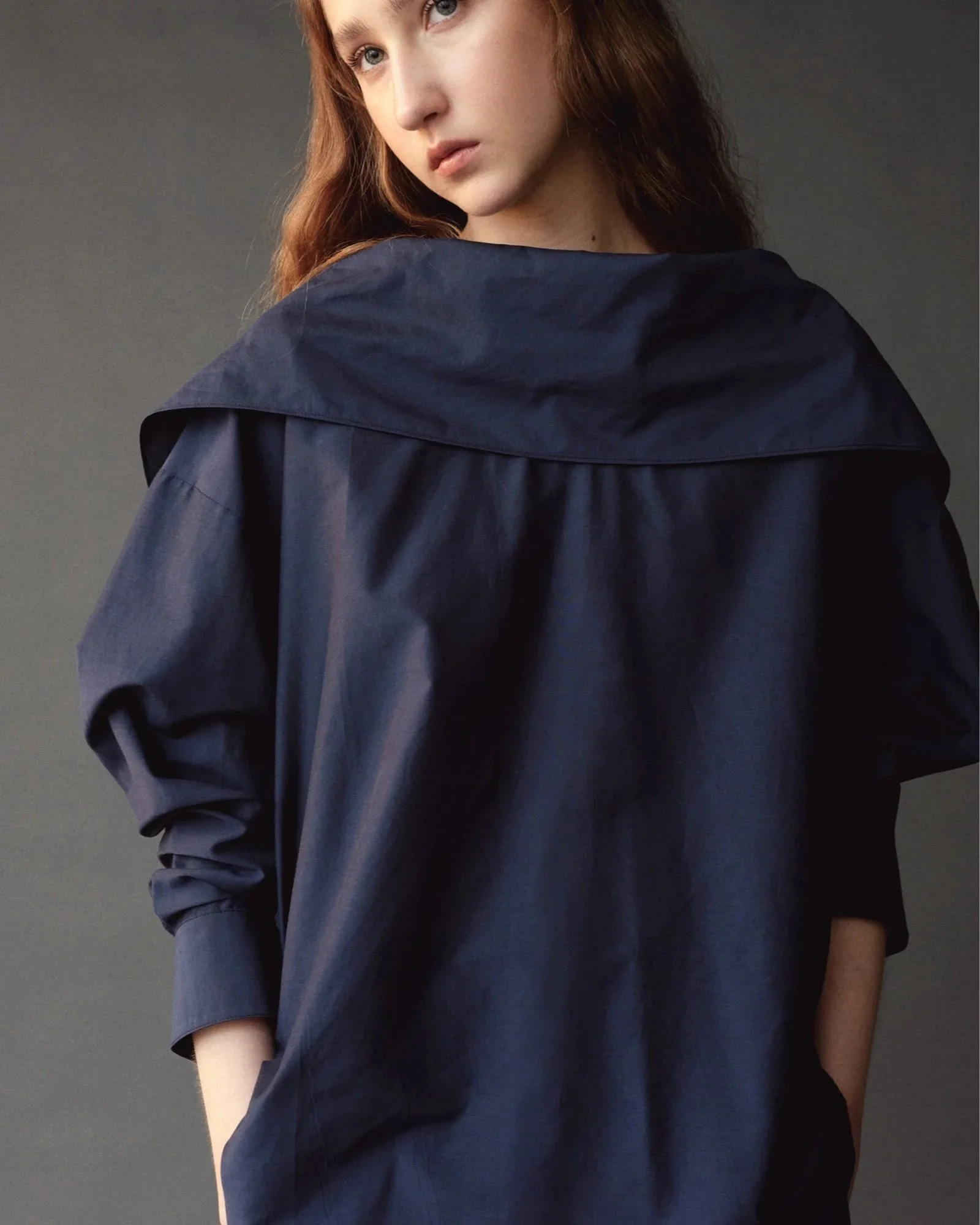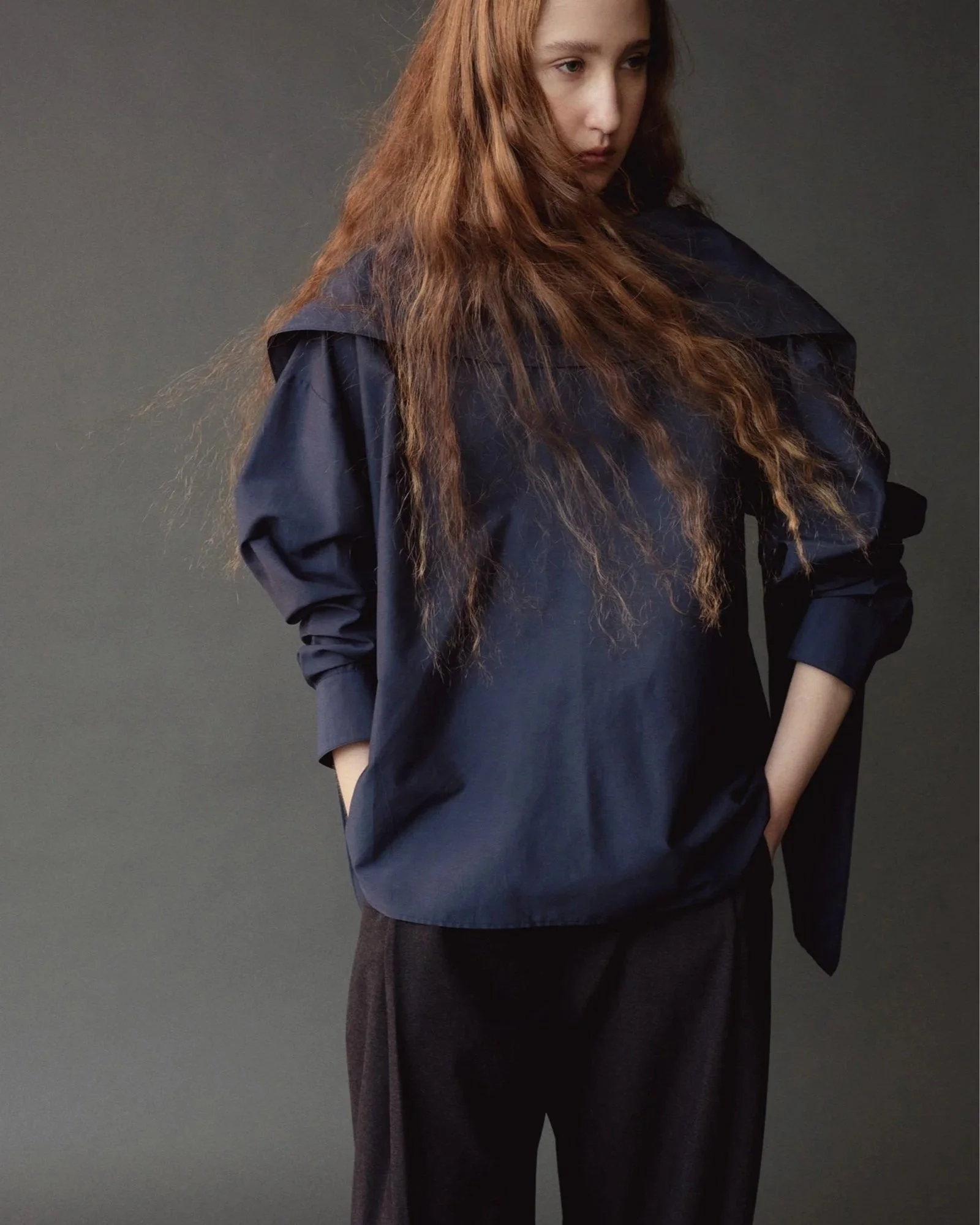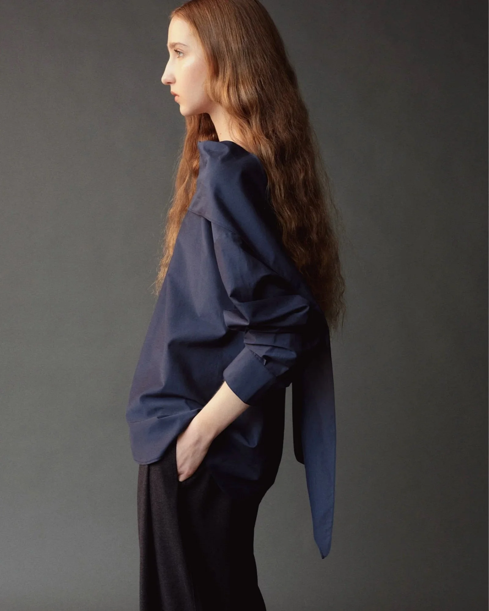 SILK BLEND TIE-NECK BLOUSE - NAVY