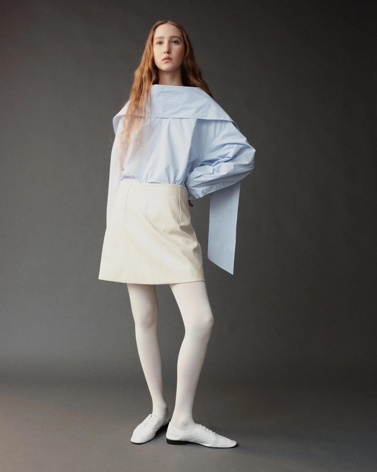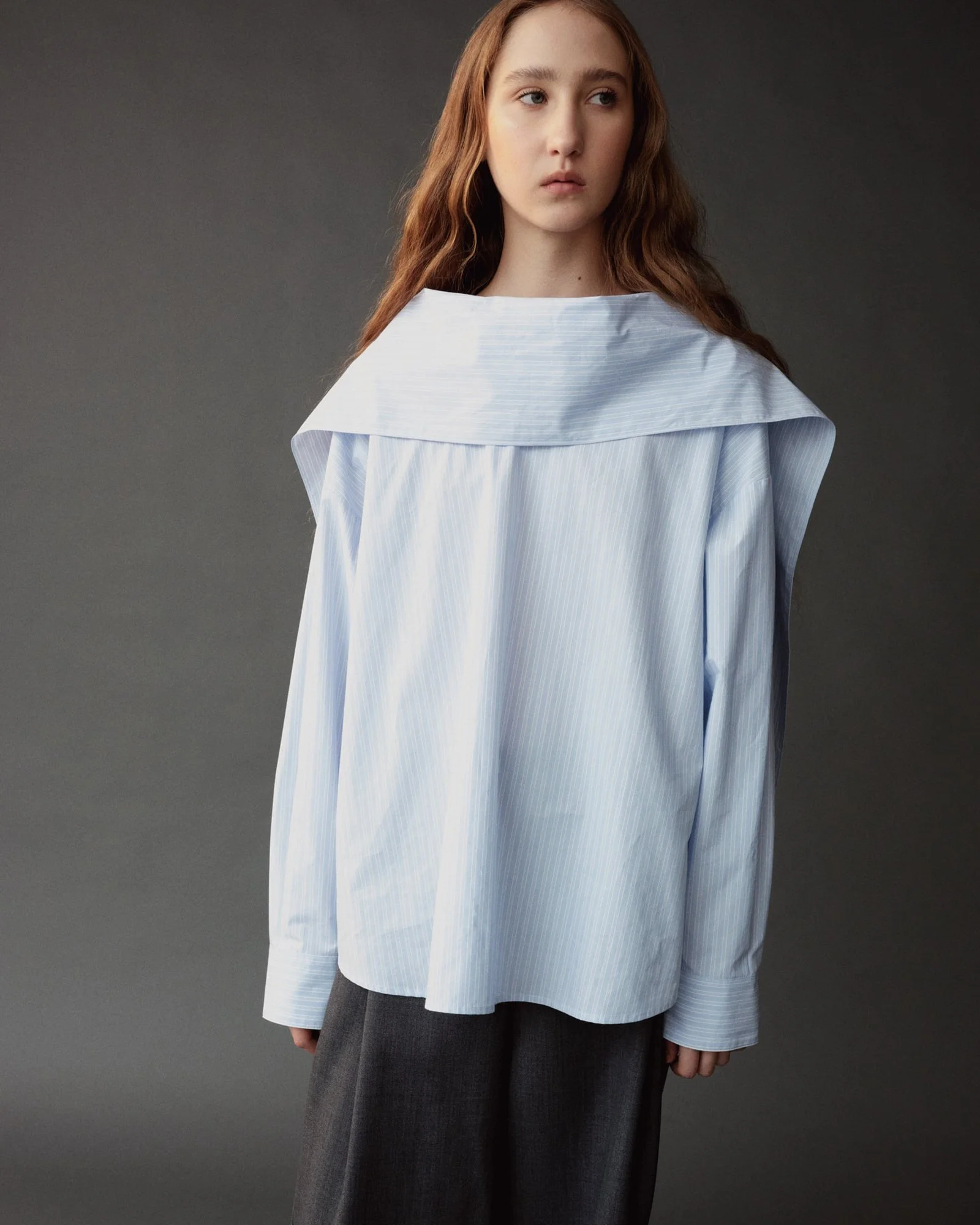 STRIPED TIE-NECK BLOUSE - LIGHT BLUE