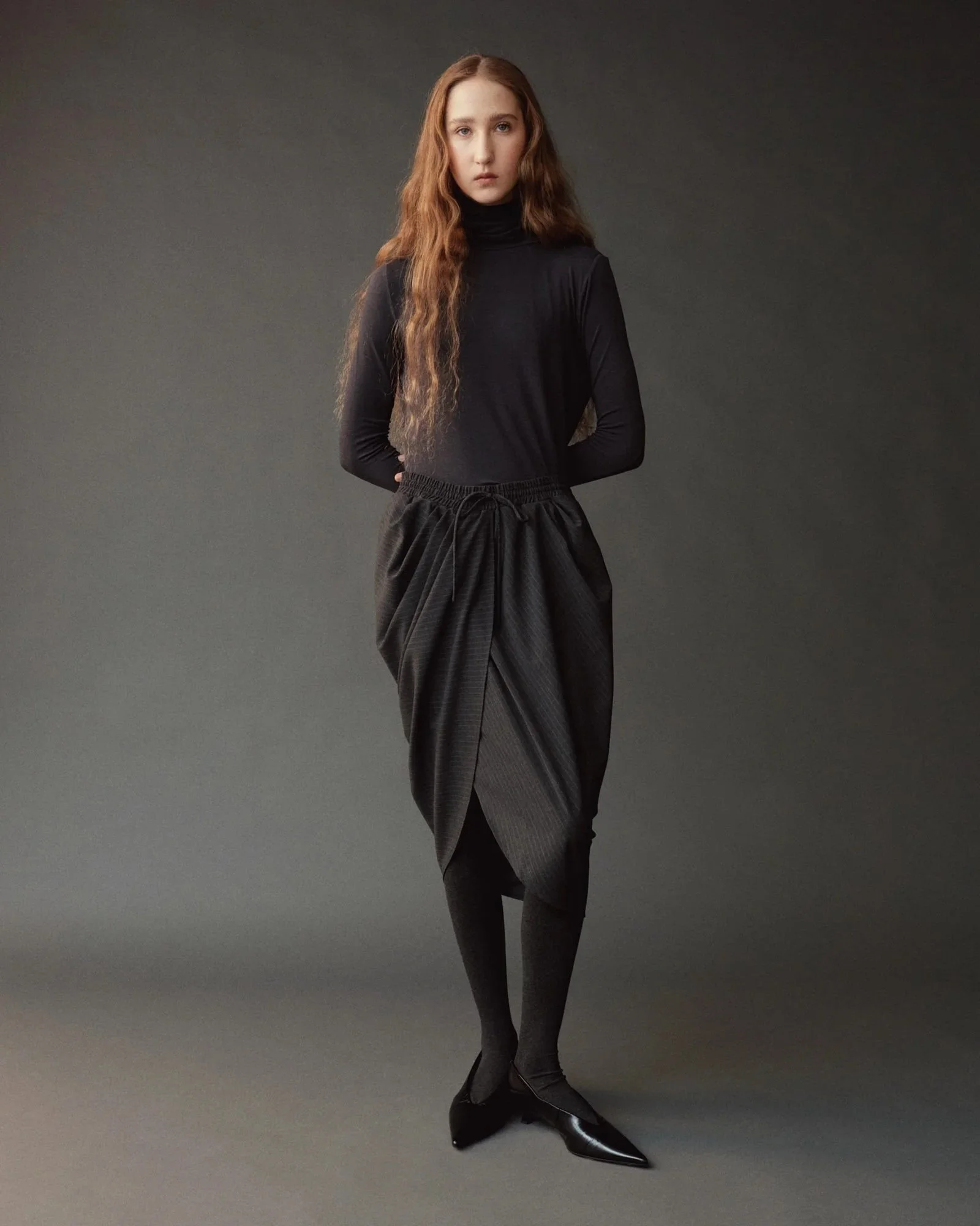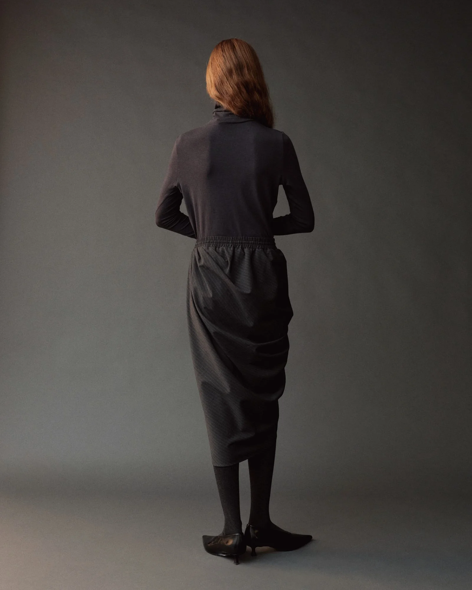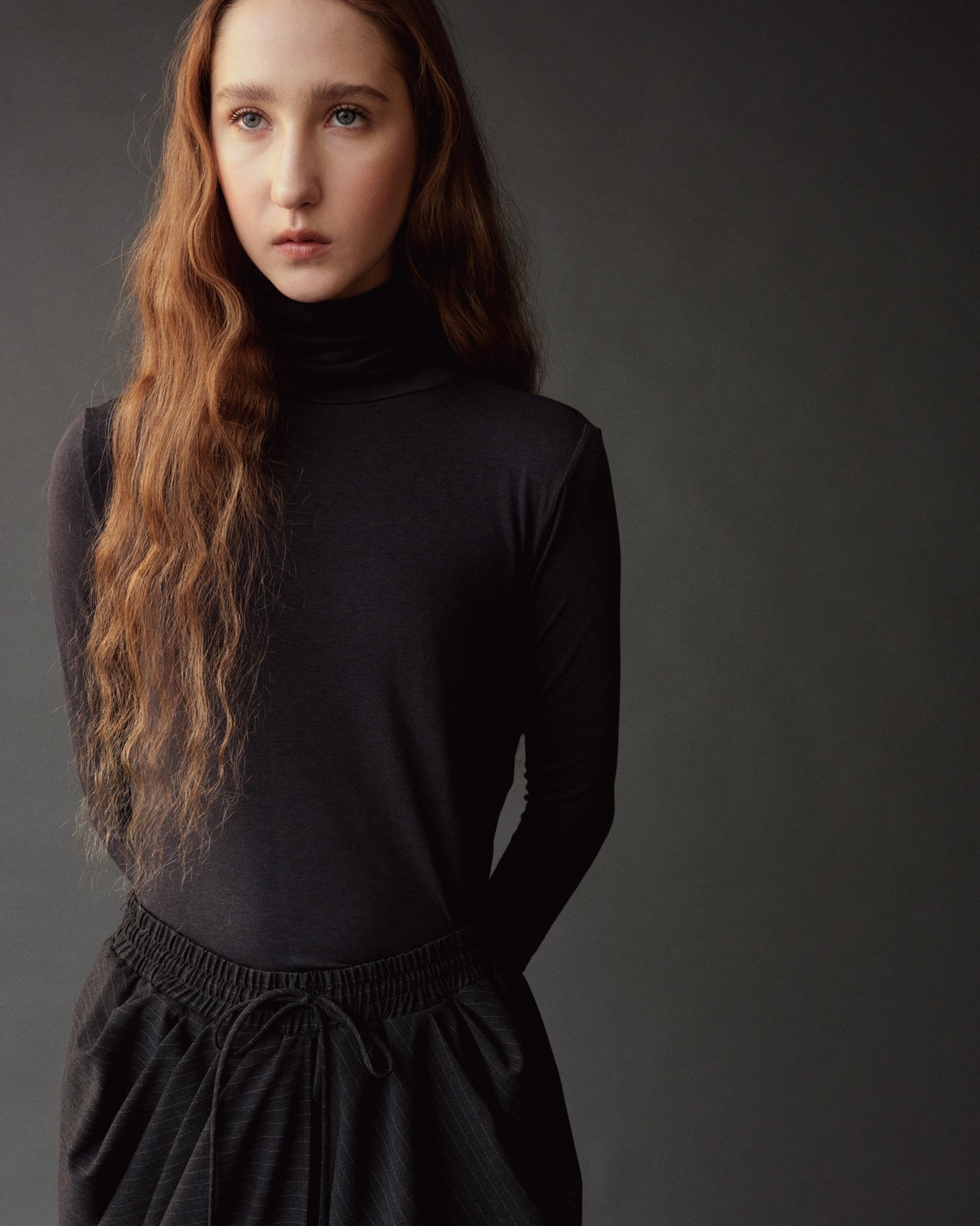 ROLL NECK JERSEY TOP - GRAPHITE