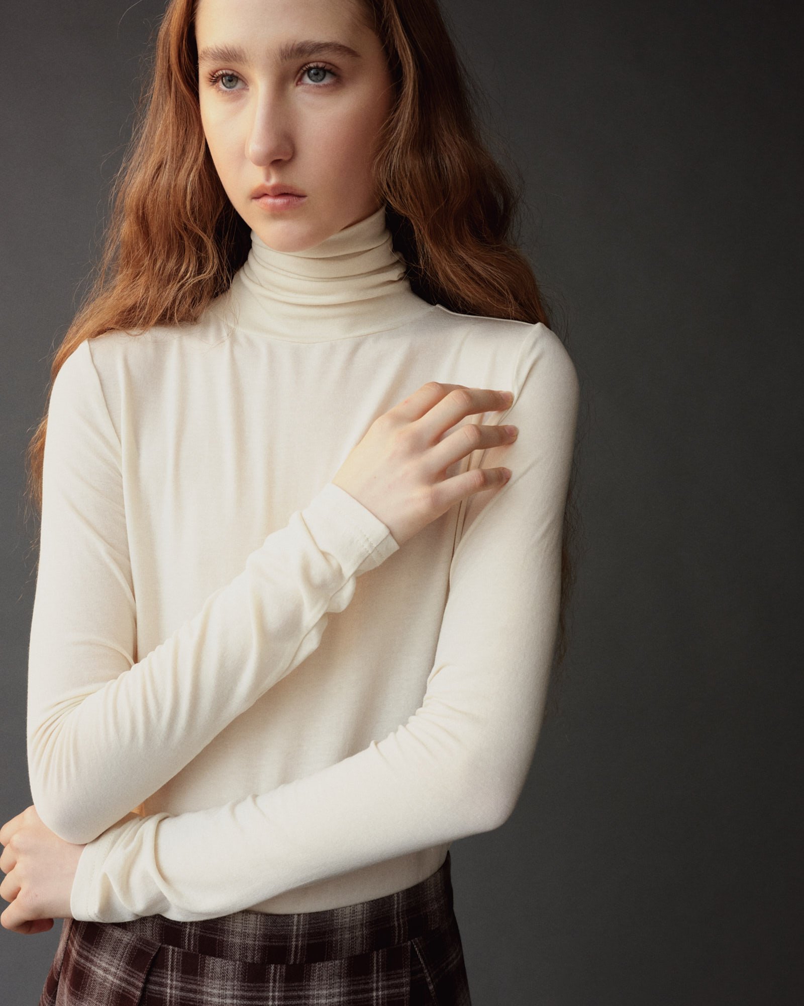 ROLL NECK JERSEY TOP - IVORY