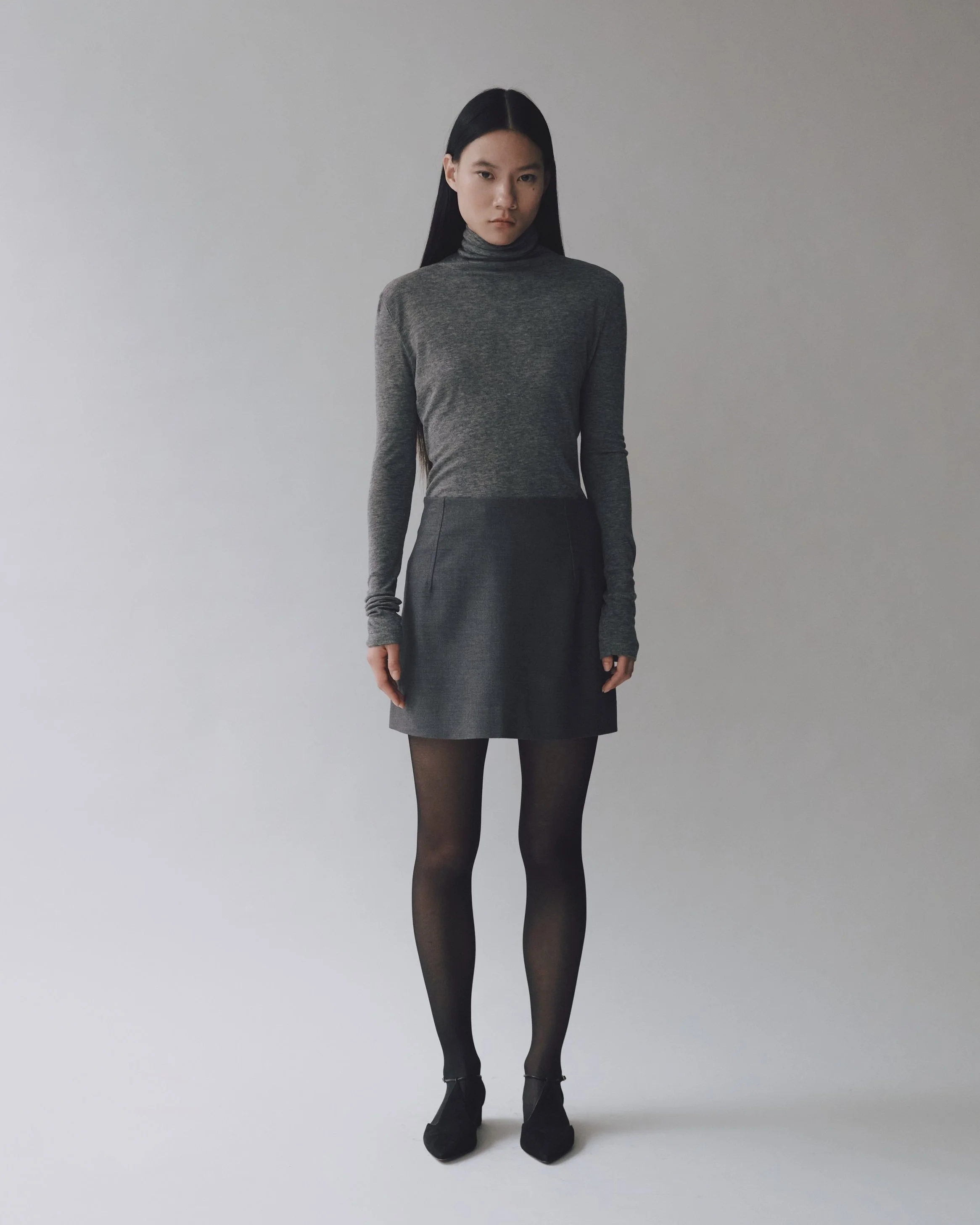 WOOL BLEND MINI SKIRT - CHARCOAL